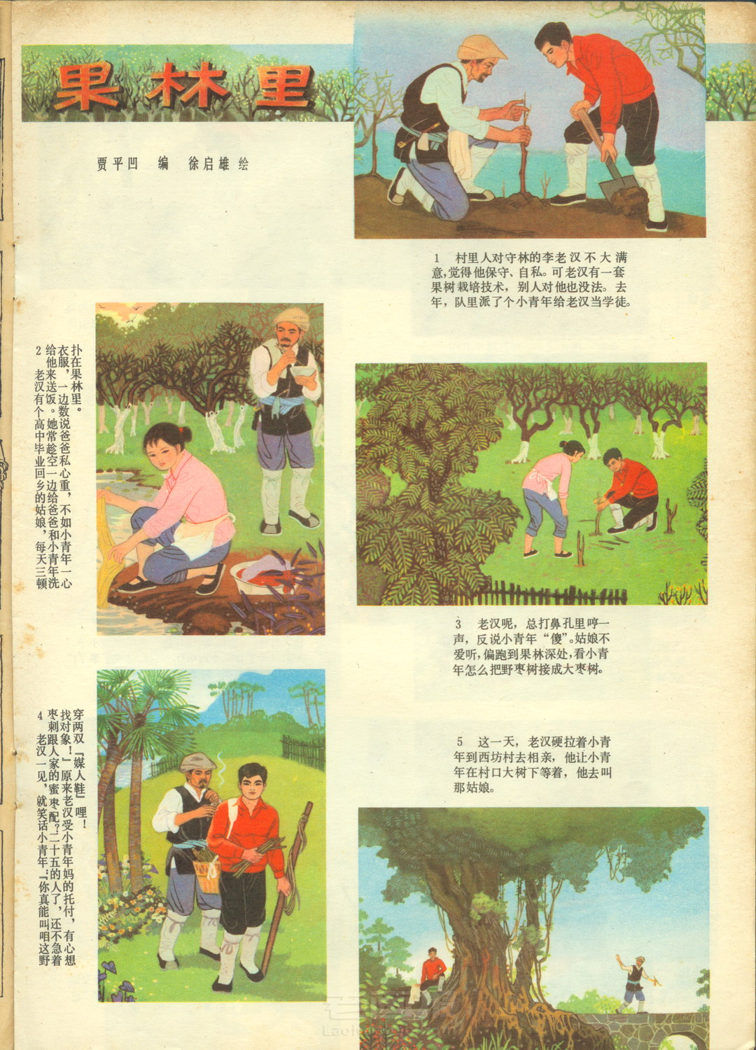 连环画 《果林里》 编文:贾平凹 绘画:徐启雄 连环画报 1979年第5期 老画报网藏书扫描制作 转载请注明出处 1 2 3 4 目录 |<< < 上一页 下一页 > >>| 果林里 < 上一页下一页 >