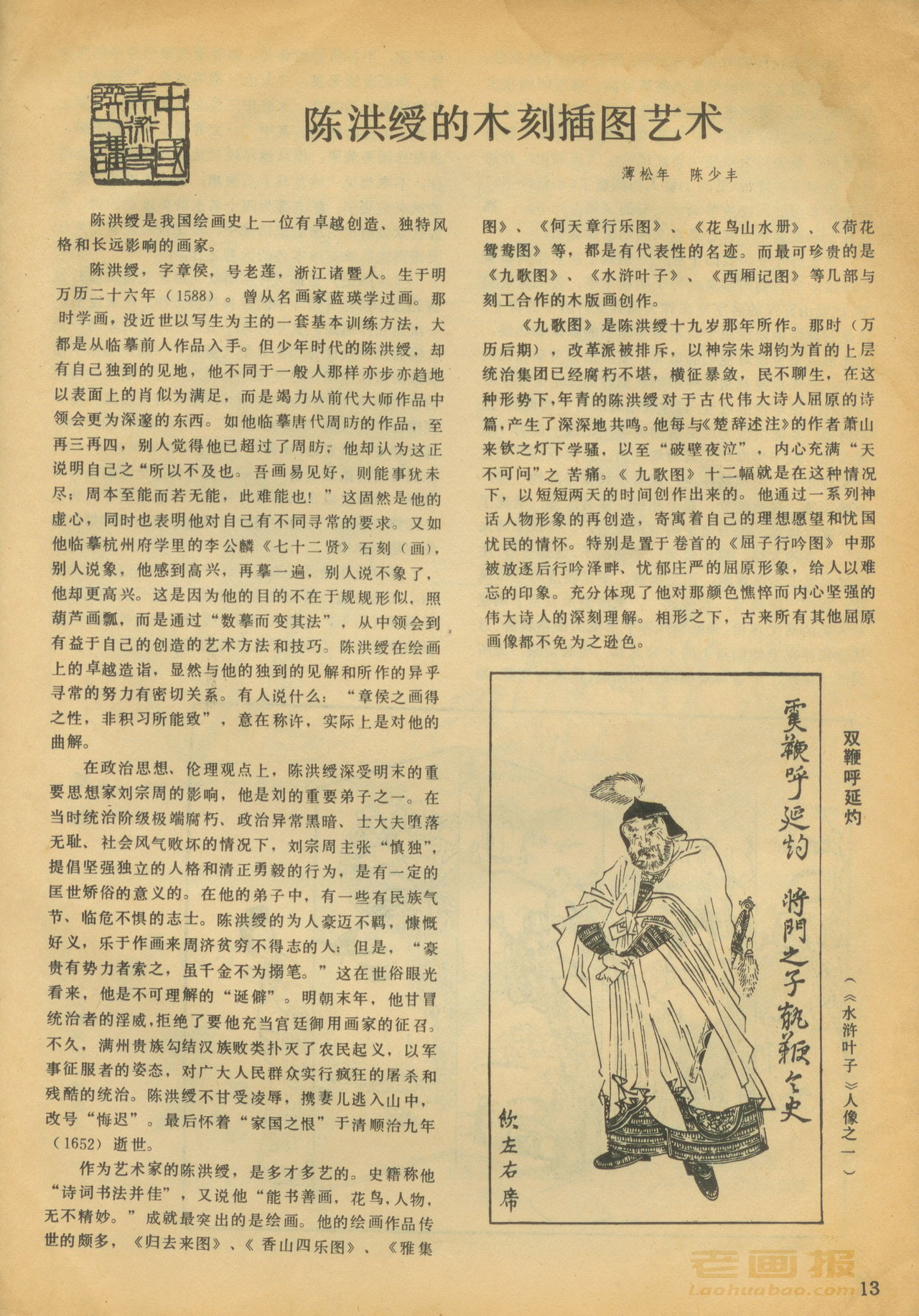 陈洪绶的木刻插图艺术 作者:薄松年 陈少丰 绘画:陈洪绶 河北画刊 1979年第5期 老画报网藏书扫描制作 转载请注明出处 1 2 目录 |<< < 上一页 下一页 > >>| 陈洪绶的木刻插图艺术 < 上一页下一页 >