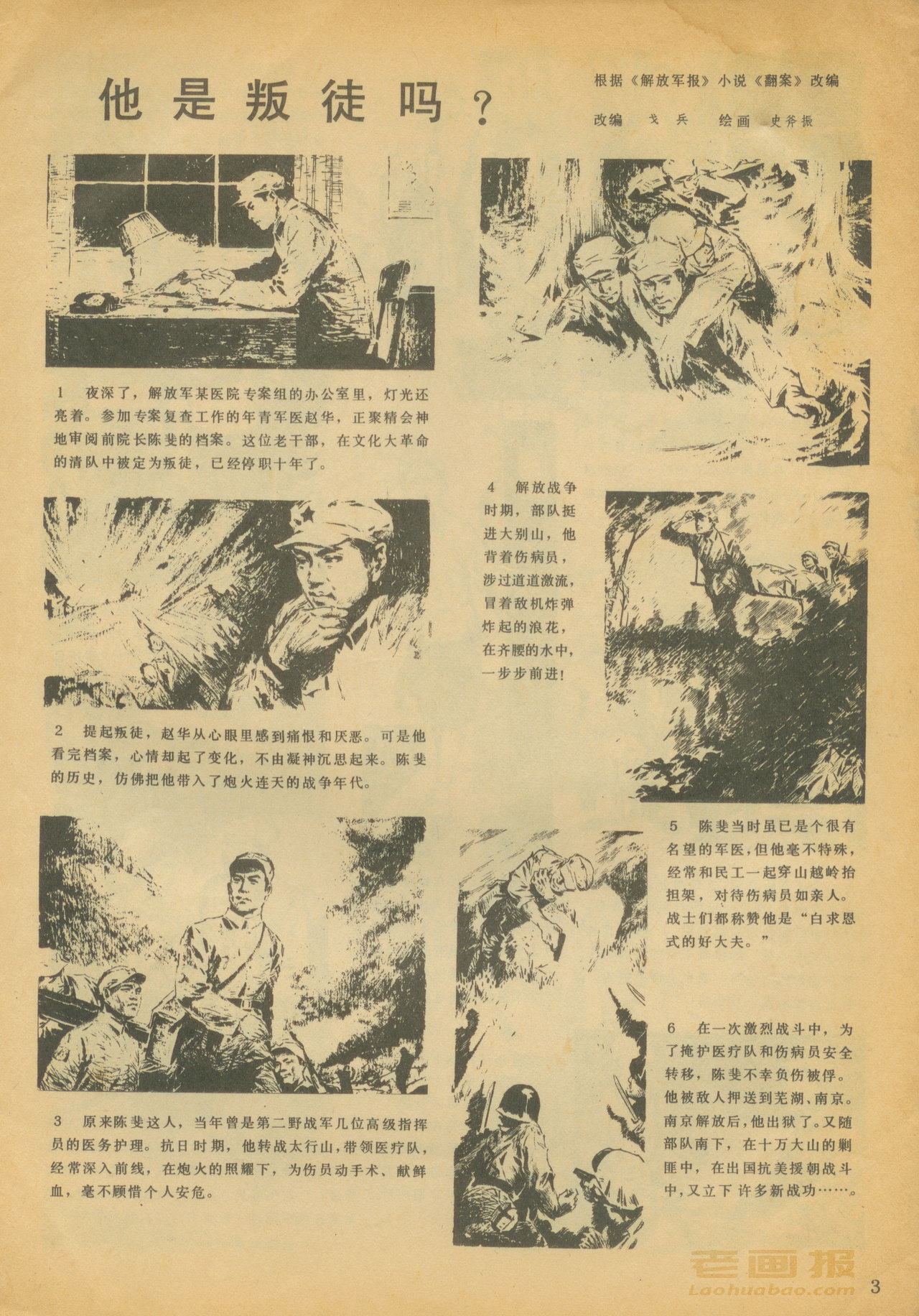 连环画 《他是叛徒吗?》 根据《解放军报》小说《翻案》 编文:戈兵 绘画:史斧振 河北画刊 1979年第5期 老画报网藏书扫描制作 转载请注明出处 1 2 3 4 5 目录 |<< < 上一页 下一页 > >>| 他是叛徒吗? < 上一页下一页 >