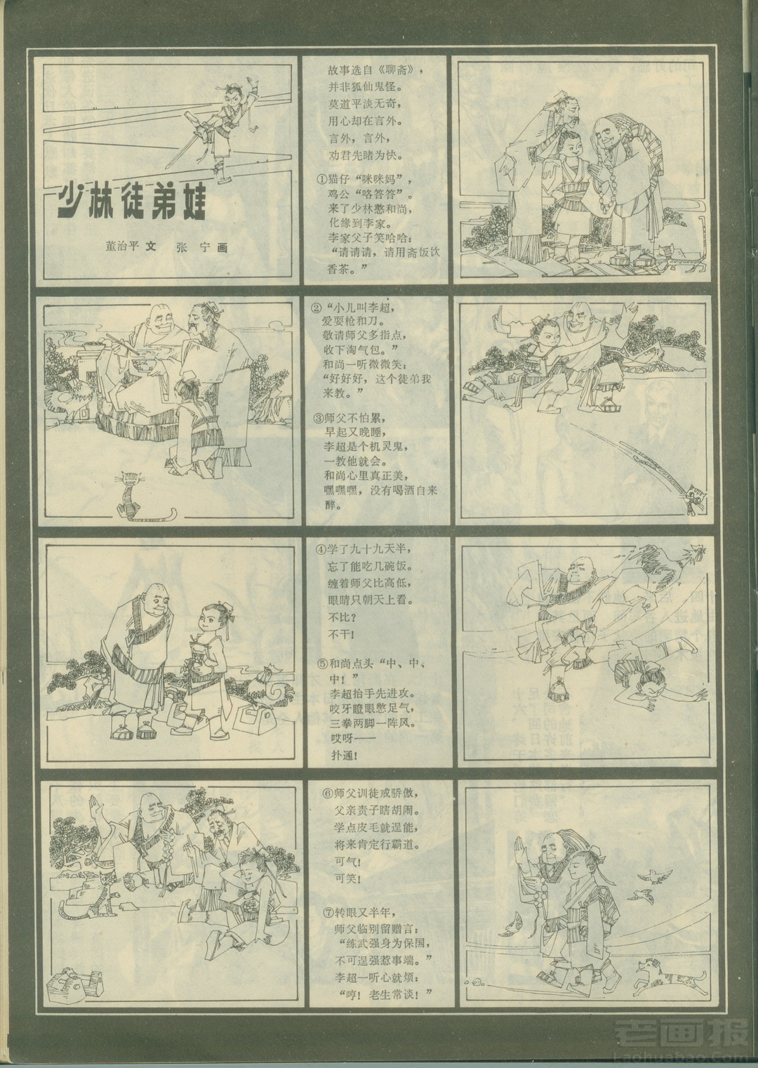 连环画 《少林徒弟娃》 编文:董治平 绘画:张宁 汉水画报 1983年第1期 老画报网藏书扫描制作 转载请注明出处 1 2 3 目录 |<< < 上一页 下一页 > >>| 少林徒弟娃 < 上一页下一页 >