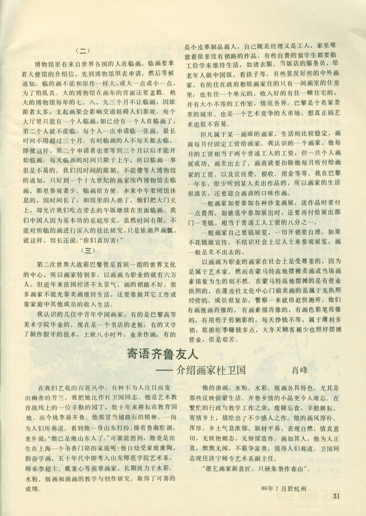 (全本扫描)《齐鲁画刊》1986年5期 第3页 老画报网藏书扫描 1986 1 2 3 4 目录 |<< < 上一页 下一页 > >>| (全本扫描)《齐鲁画刊》1986年5期 共4页 < 上一页下一页 >