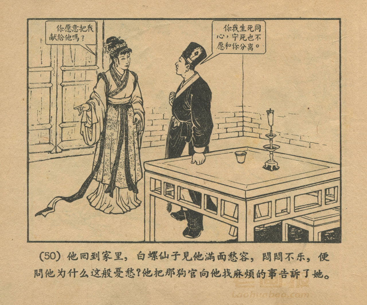 连环画《白螺仙子》 1959老版 第4页 原著:田海燕 编文:吉志西 绘画:吕品 上海人民美术出版社 1959 此连环画来源于连友“一步”藏书扫描,同意老画报网站免费发布不做商用。您可以自由分享、引用,但必须署名原作者,并不得用于商业目的。 1 2 3 4 5 目录 |<< < 上一页 下一页 > >>| 白螺仙子 共5页 < 上一页下一页 >