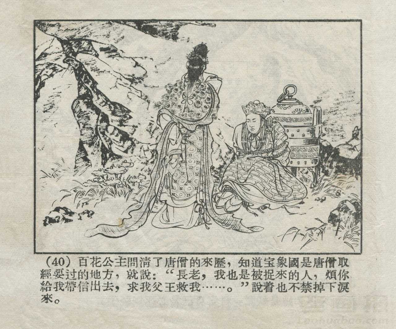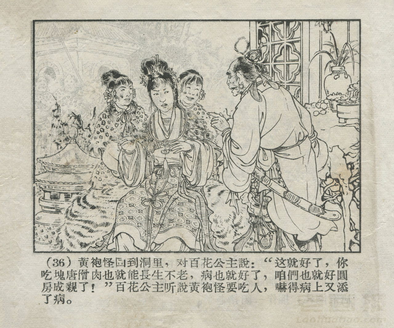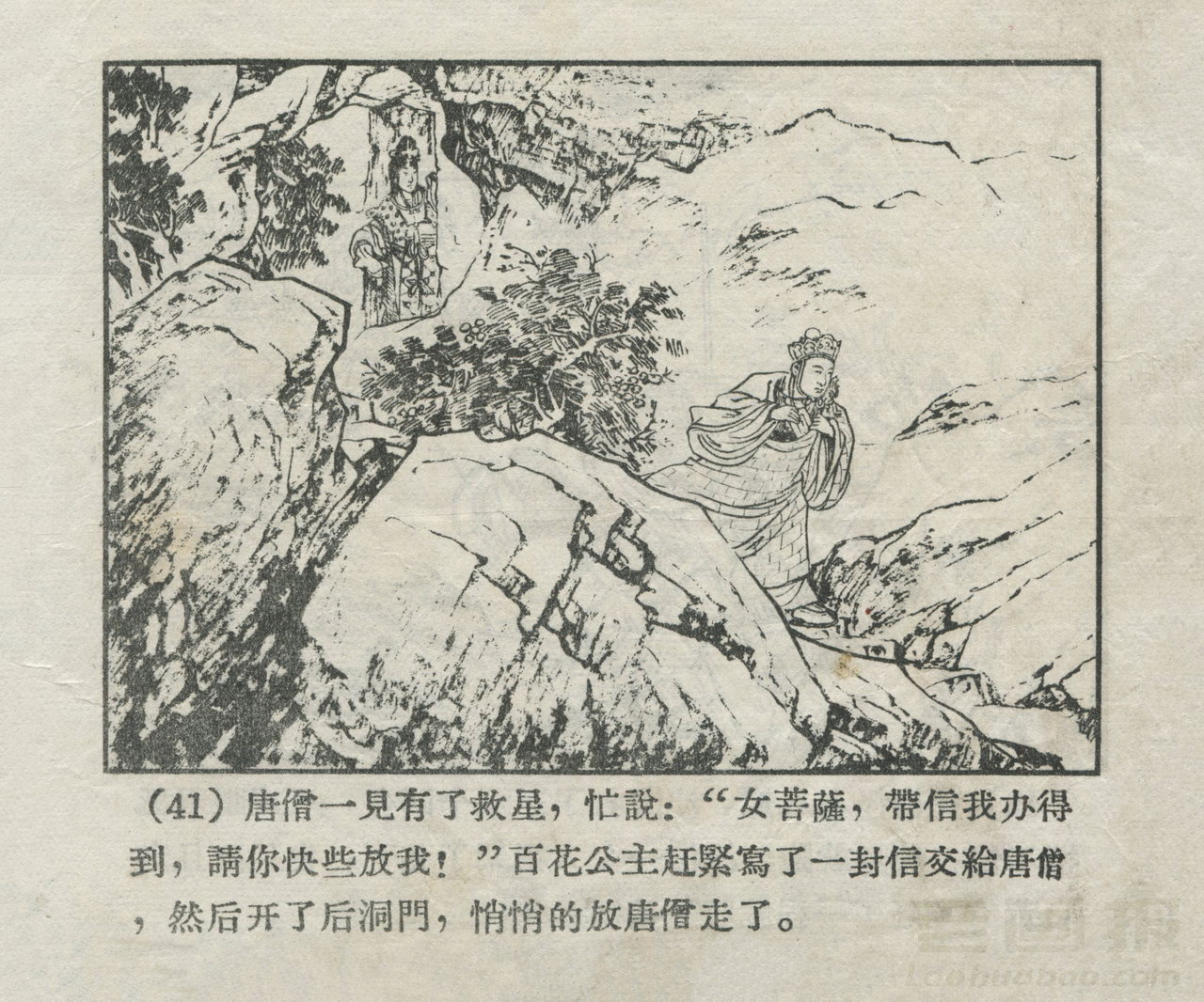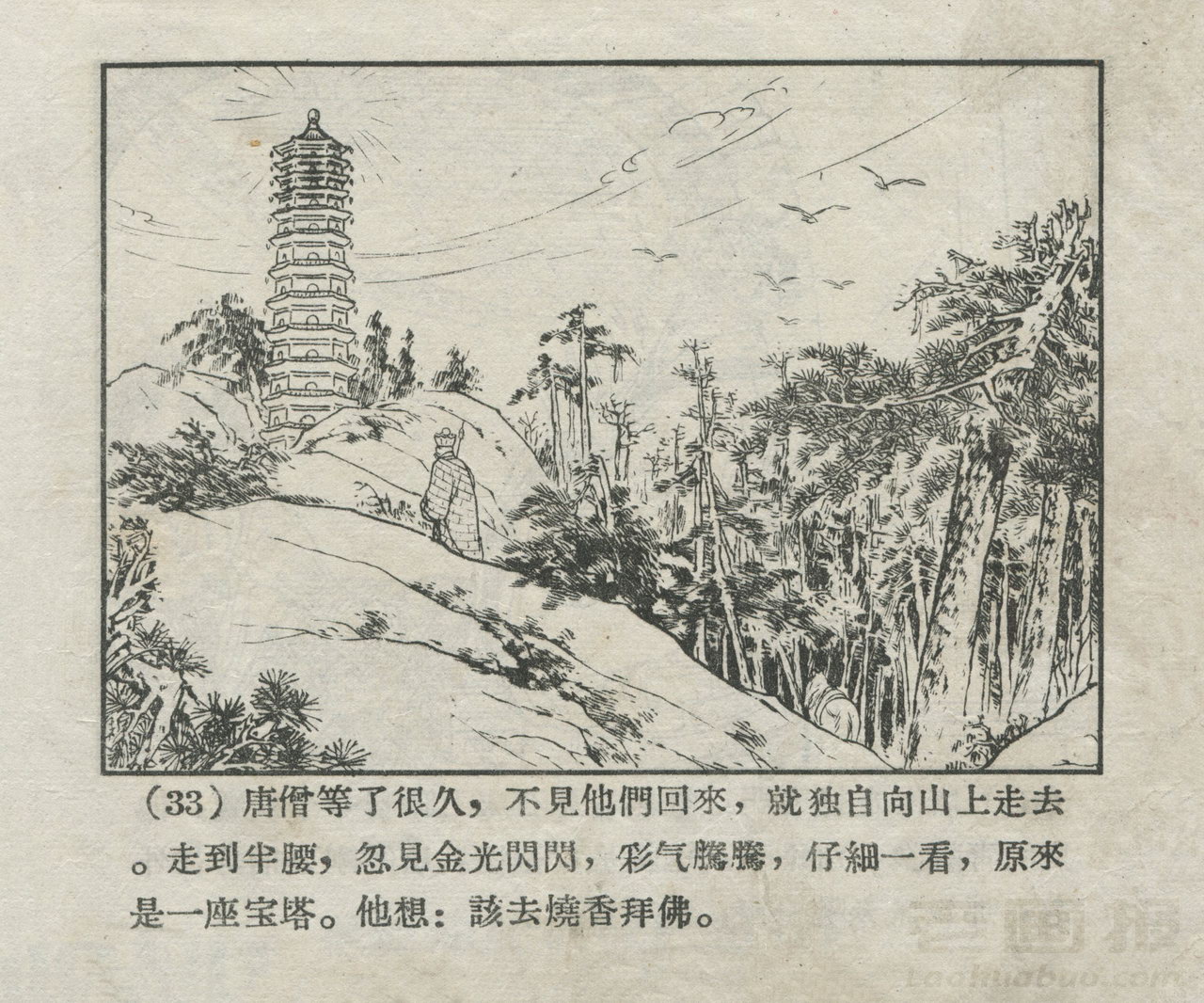 连环画《波月洞》 1956老版西游 第3页 编文:郭烽明 绘画:刘汉宗 河北人民美术出版社 1956 此连环画来源于连友“一步”藏书扫描,同意老画报网站免费发布不做商用。您可以自由分享、引用,但必须署名原作者,并不得用于商业目的。 1 2 3 4 5 6 7 目录 |<< < 上一页 下一页 > >>| 波月洞 共7页 < 上一页下一页 >
