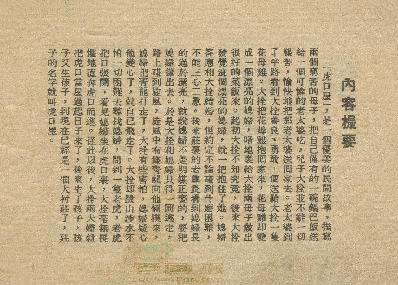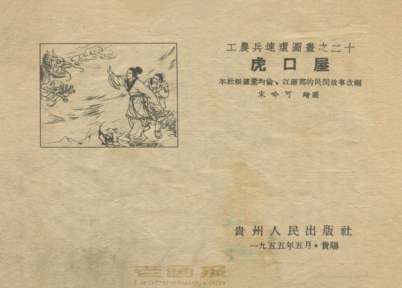 连环画《虎口屋》 1955老版缺封底 根据董均伦 江源民间故事 绘画:宋吟可 贵州人民出版社 1955 此连环画来源于连友“一步”藏书扫描,同意老画报网站免费发布不做商用。您可以自由分享、引用,但必须署名原作者,并不得用于商业目的。 工农兵连环图画 1 2 3 4 目录 |<< < 上一页 下一页 > >>| 虎口屋 共4页 < 上一页下一页 >