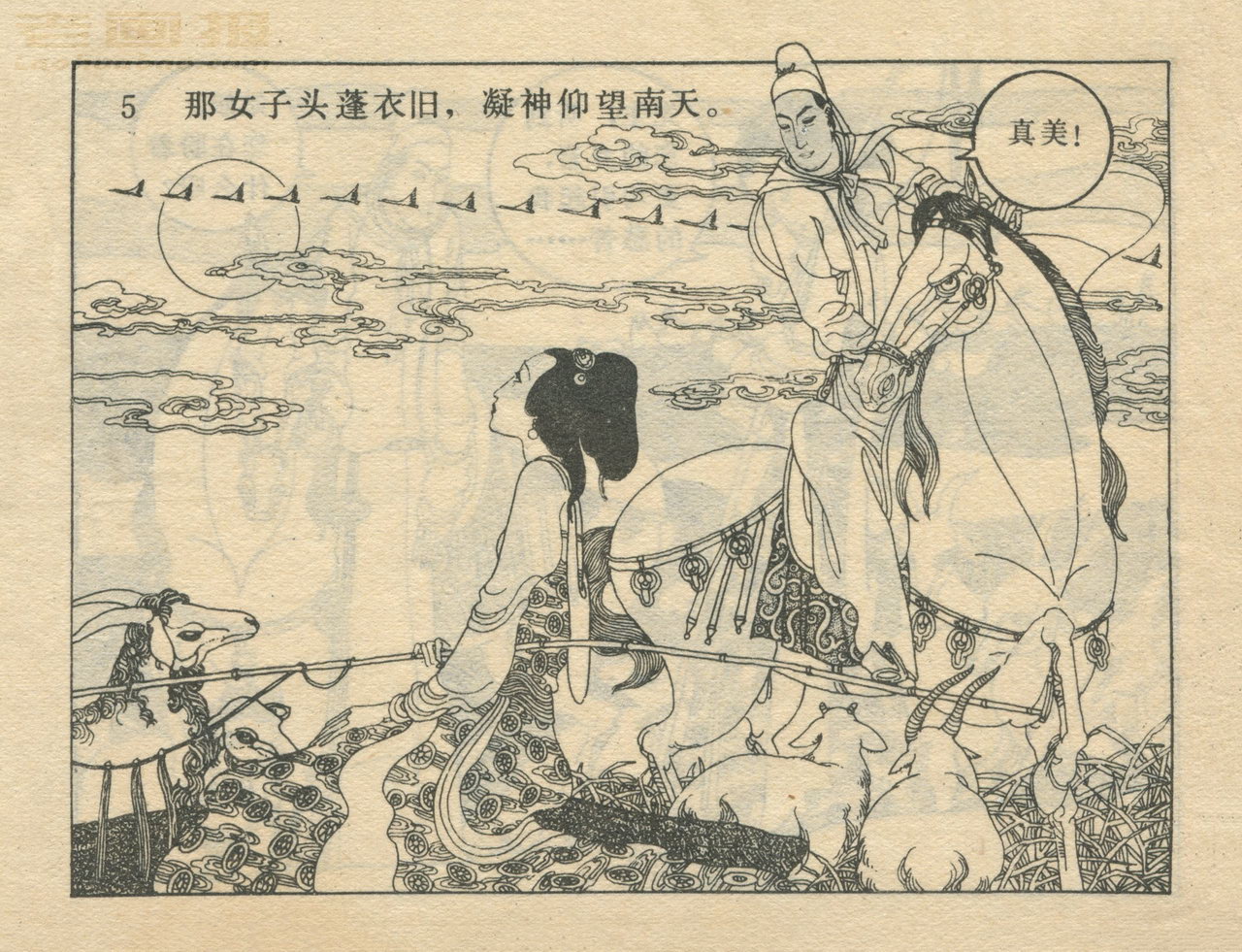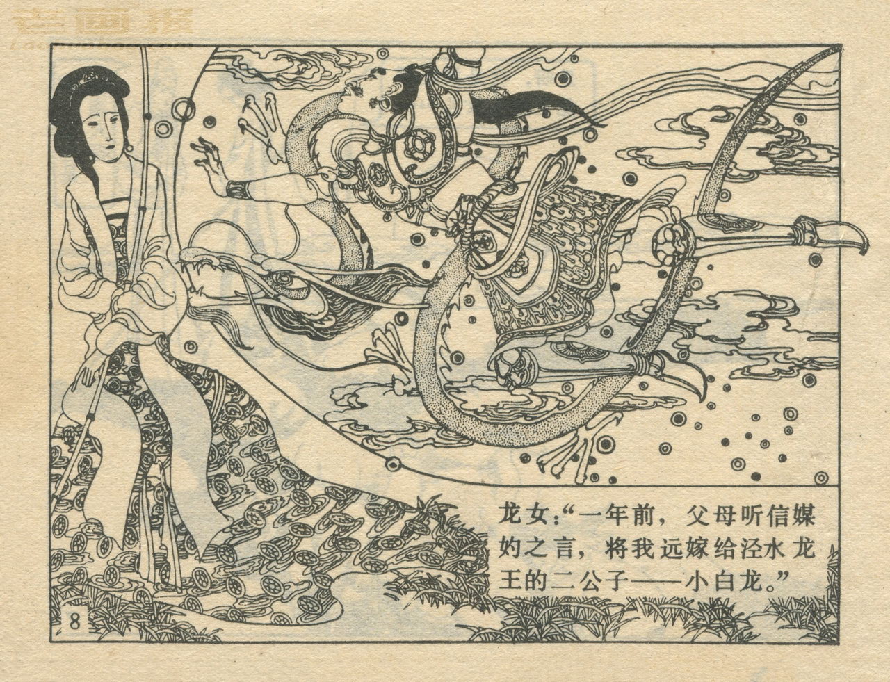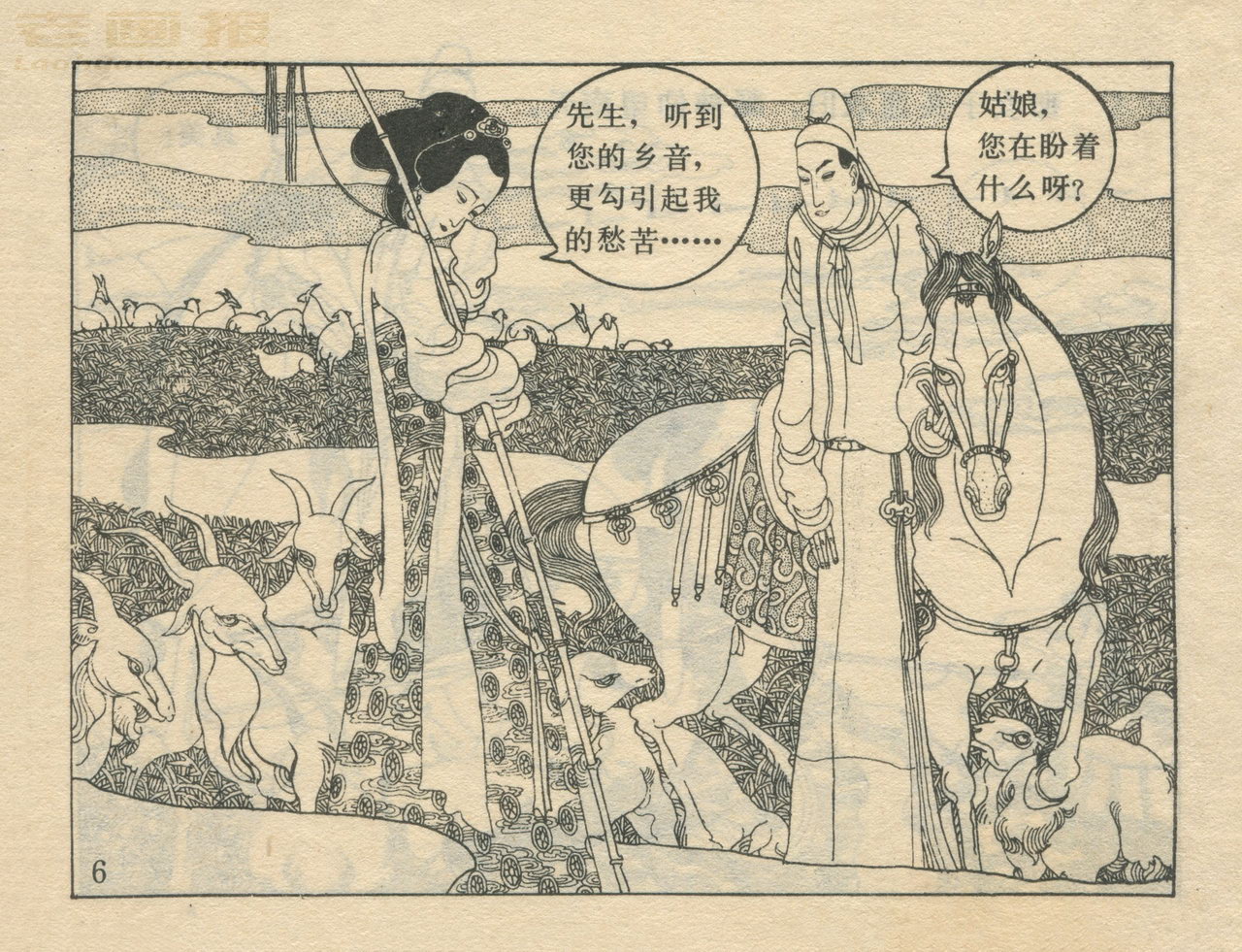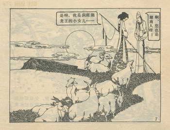 连环画《龙女牧羊》 1983版获奖 原著:[唐]李朝威《唐人小说》 编文:孙锦常 绘画:卢延光 岭南美术出版社 1983 此连环画来源于连友“一步”藏书扫描,同意老画报网站免费发布。您可以自由分享、引用,但必须署名原作者,并不得用于商业目的。 本作品荣获第三届全国连环画评奖绘画二等奖。古典文学作品选。 1 2 3 4 5 6 7 8 目录 |<< < 上一页 下一页 > >>| 龙女牧羊 共8页 < 上一页下一页 >