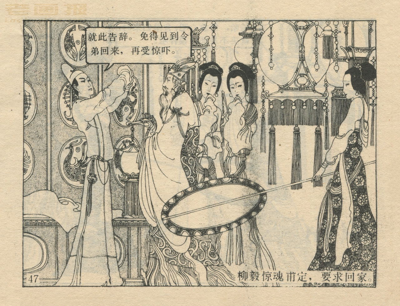 连环画《龙女牧羊》 1983版获奖 第4页 原著:[唐]李朝威《唐人小说》 编文:孙锦常 绘画:卢延光 岭南美术出版社 1983 此连环画来源于连友“一步”藏书扫描,同意老画报网站免费发布。您可以自由分享、引用,但必须署名原作者,并不得用于商业目的。 本作品荣获第三届全国连环画评奖绘画二等奖。古典文学作品选。 1 2 3 4 5 6 7 8 目录 |<< < 上一页 下一页 > >>| 龙女牧羊 共8页 < 上一页下一页 >