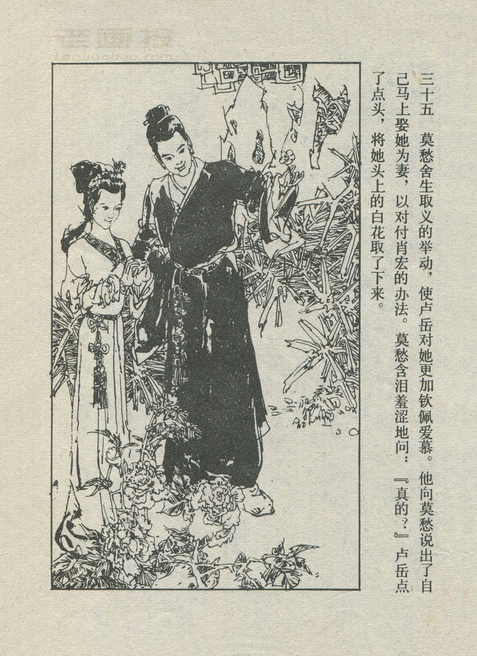 连环画《莫愁女》 1983老版 第3页 根据同名电影剧本 编文:袁海廷 绘画:吴绪经 漓江出版社 1983 此连环画来源于连友“一步”藏书扫描,同意老画报网站免费发布。您可以自由分享、引用,但必须署名原作者,并不得用于商业目的。 1 2 3 4 5 6 7 目录 |<< < 上一页 下一页 > >>| 莫愁女 共7页 < 上一页下一页 >