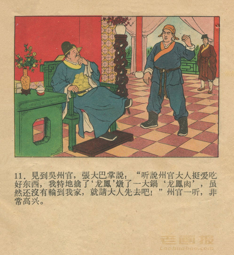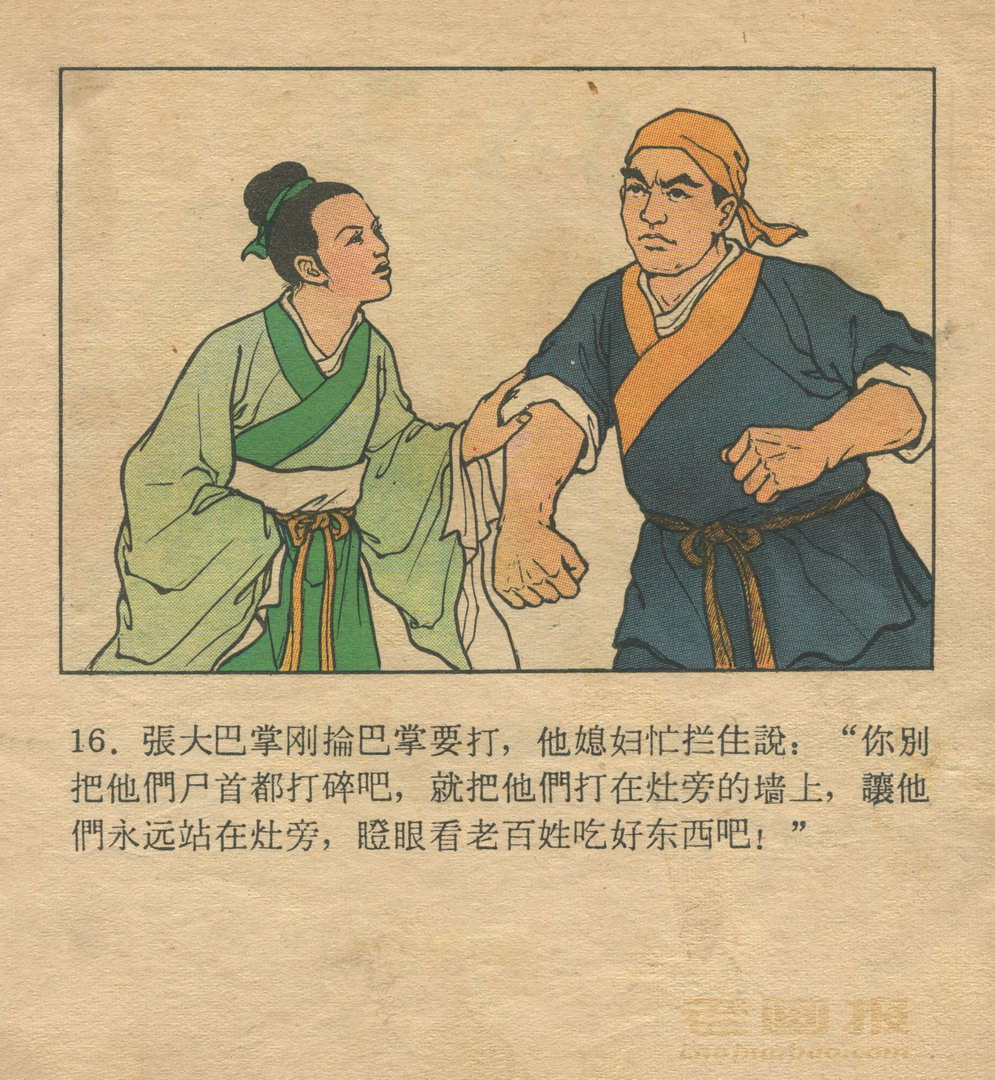 连环画《灶王爷》 《肥国王》1959老版 第2页 根据民间故事 编文:谢进新 张金禄 绘画:徐余兴 人民美术出版社 1959 此连环画来源于连友“一步”藏书扫描,同意老画报网站免费发布。您可以自由分享、引用,但必须署名原作者,并不得用于商业目的。 1 2 3 4 5 目录 |<< < 上一页 下一页 > >>| 灶王爷 共5页 < 上一页下一页 >