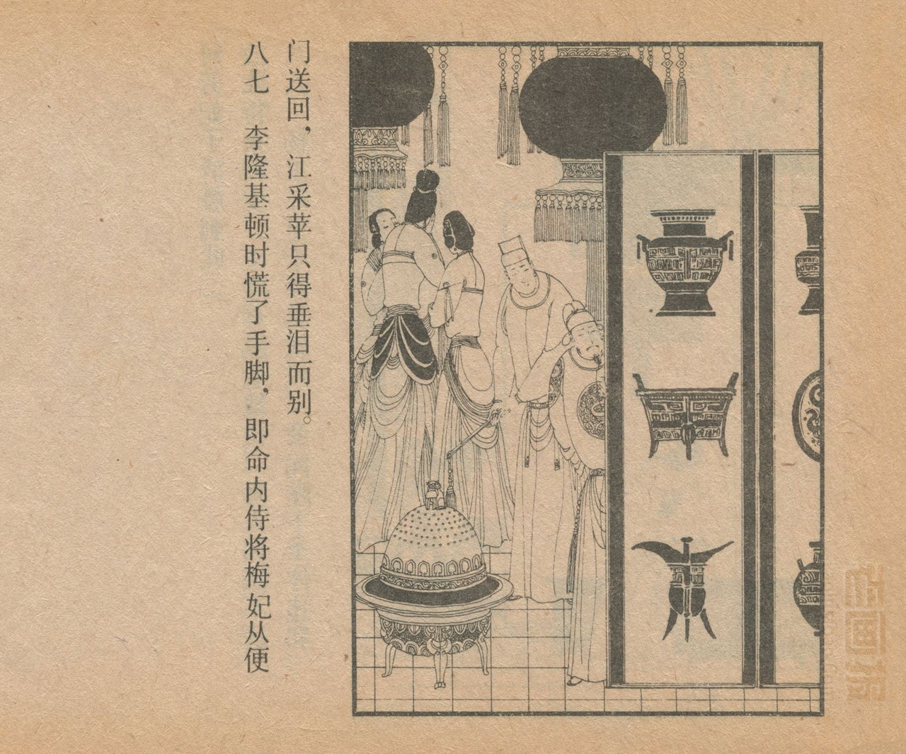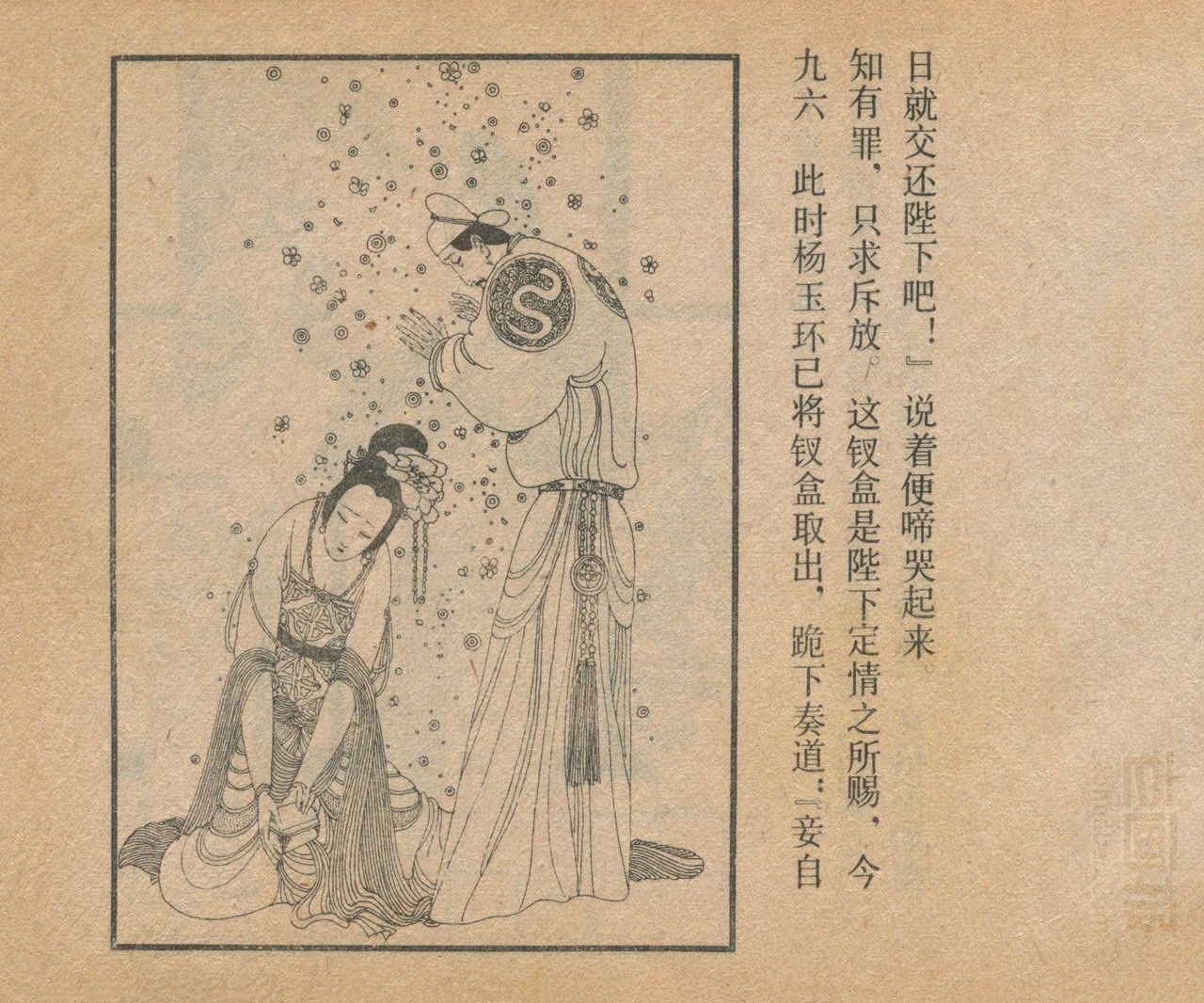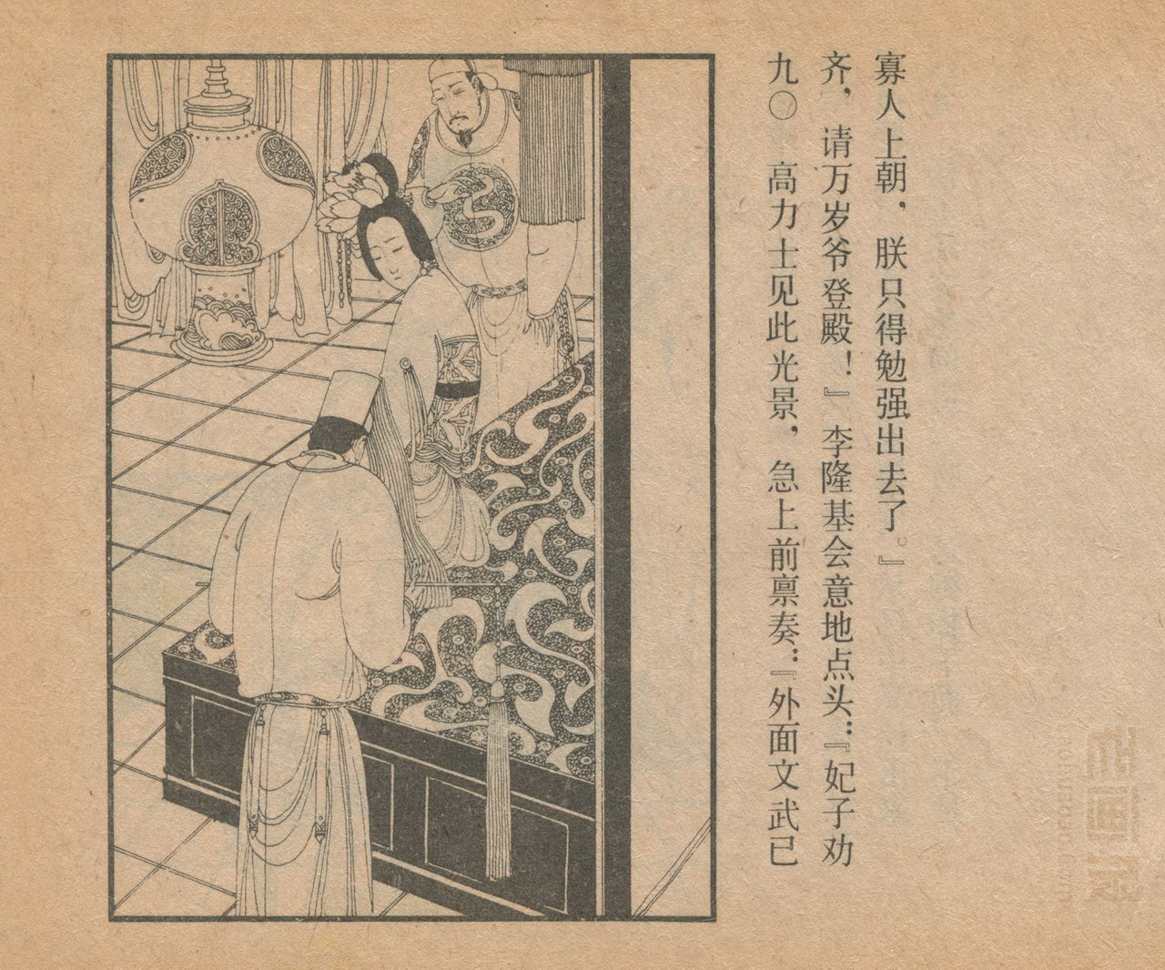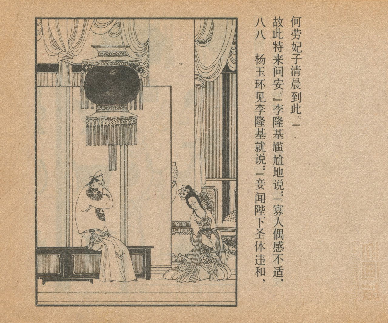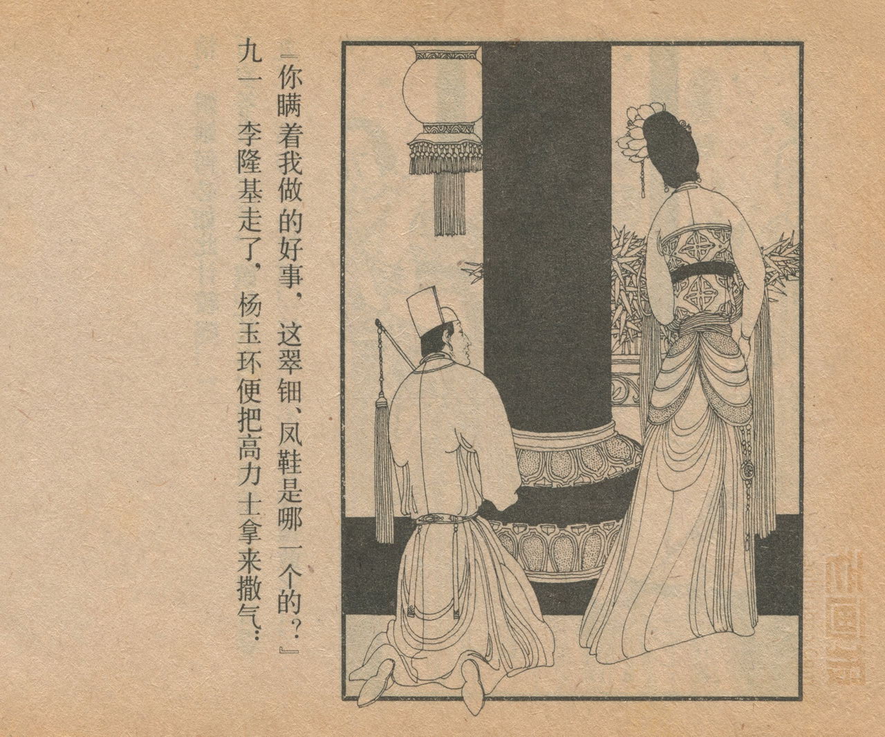 连环画《长生殿》 1985版 第5页 原著:[清]洪昇 编文:闻起 绘画:卢延光 中国戏剧出版社 1985 此连环画来源于连友“一步”藏书扫描,同意老画报网站免费发布。您可以自由分享、引用,但必须署名原作者,并不得用于商业目的。 中国古典戏曲名著 01 02 03 04 05 06 07 08 09 10 … 目录 |<< < 上一页 下一页 > >>| 长生殿 共10页 < 上一页下一页 >