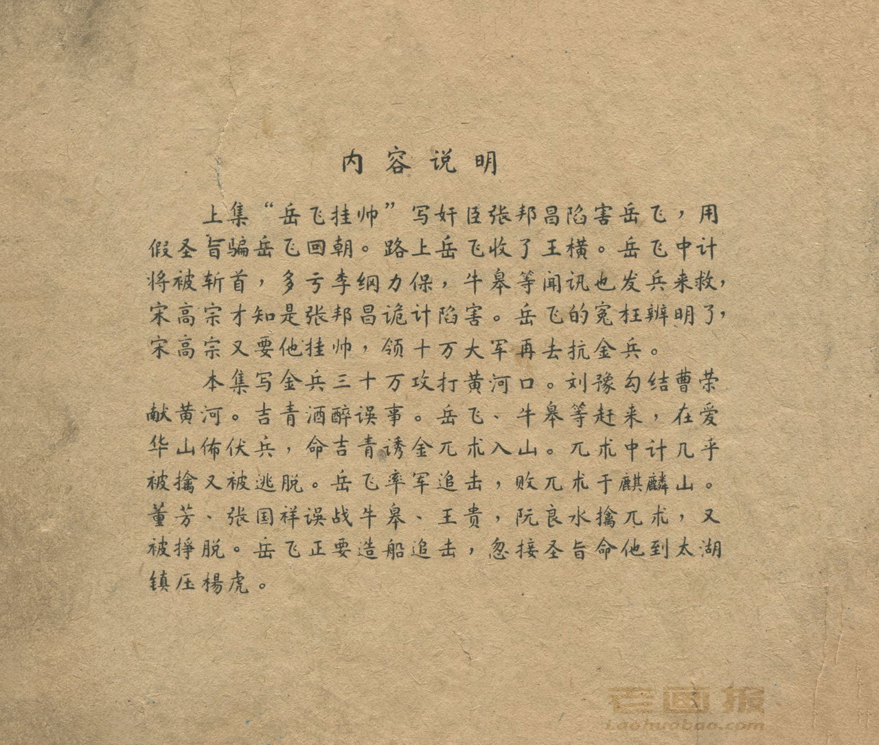 连环画《大战爱华山》 1957老版岳传 根据说岳全传 绘画:杨青华 人民美术出版社 1958 此连环画来源于连友“一步”藏书扫描,同意老画报网站免费发布不做商用。您可以自由分享、引用,但必须署名原作者,并不得用于商业目的。 1 2 3 4 5 6 目录 |<< < 上一页 下一页 > >>| 大战爱华山 共6页 < 上一页下一页 >