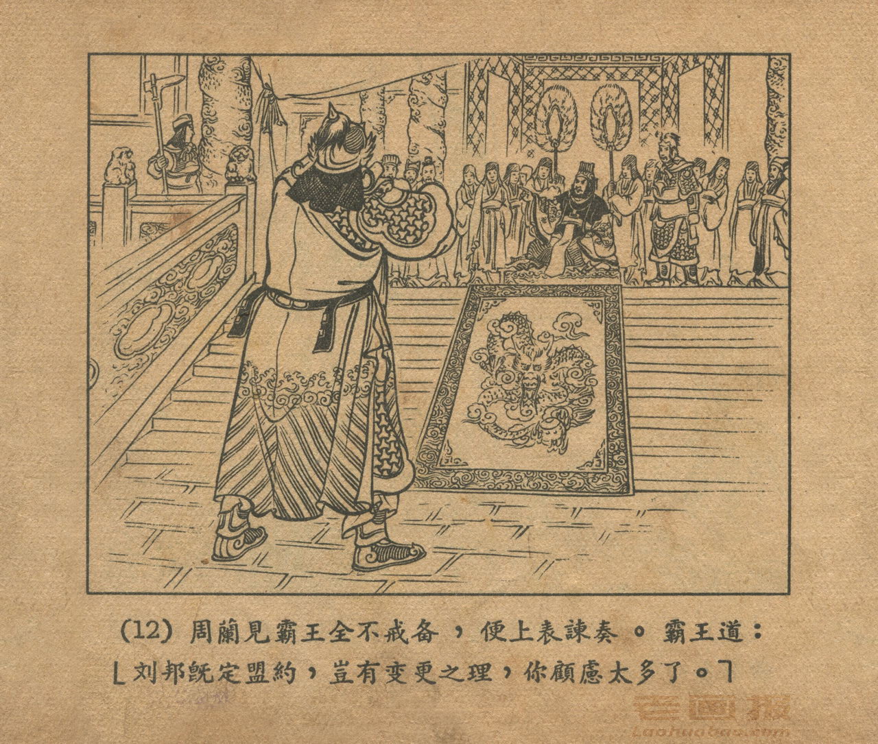 连环画《乌江自刎》 1958老版楚汉相争 编文:林林 绘画:李成勋 戴仁 上海人民美术出版社 1958 此连环画来源于连友“一步”藏书扫描,同意老画报网站免费发布。您可以自由分享、引用,但必须署名原作者,并不得用于商业目的。 1 2 3 4 5 6 7 8 9 目录 |<< < 上一页 下一页 > >>| 乌江自刎 共9页 < 上一页下一页 >