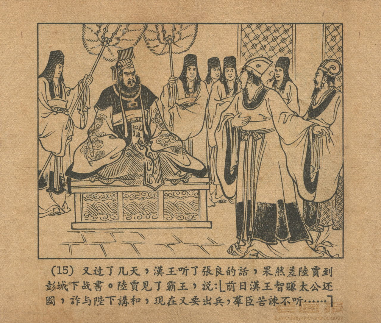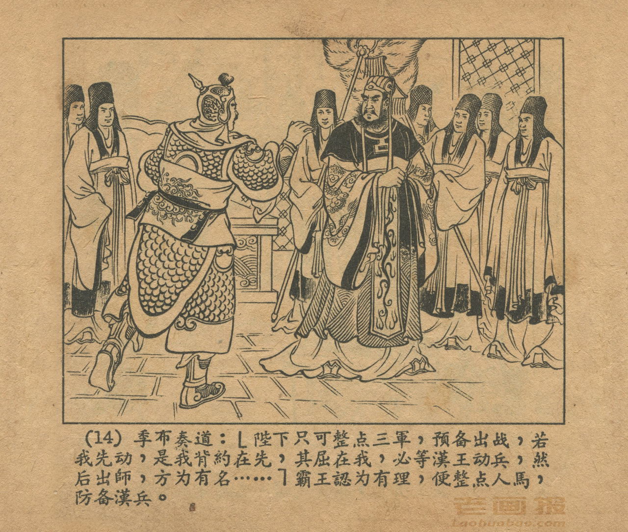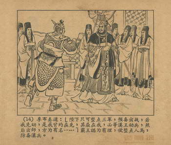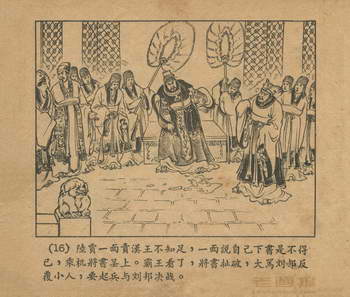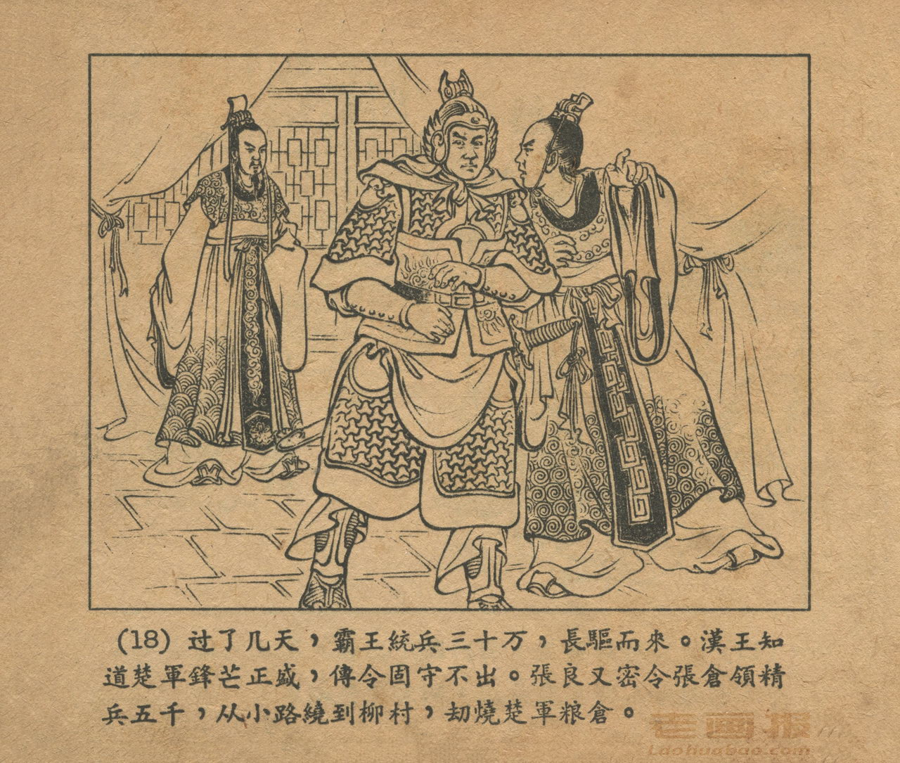 连环画《乌江自刎》 1958老版楚汉相争 第2页 编文:林林 绘画:李成勋 戴仁 上海人民美术出版社 1958 此连环画来源于连友“一步”藏书扫描,同意老画报网站免费发布。您可以自由分享、引用,但必须署名原作者,并不得用于商业目的。 1 2 3 4 5 6 7 8 9 目录 |<< < 上一页 下一页 > >>| 乌江自刎 共9页 < 上一页下一页 >