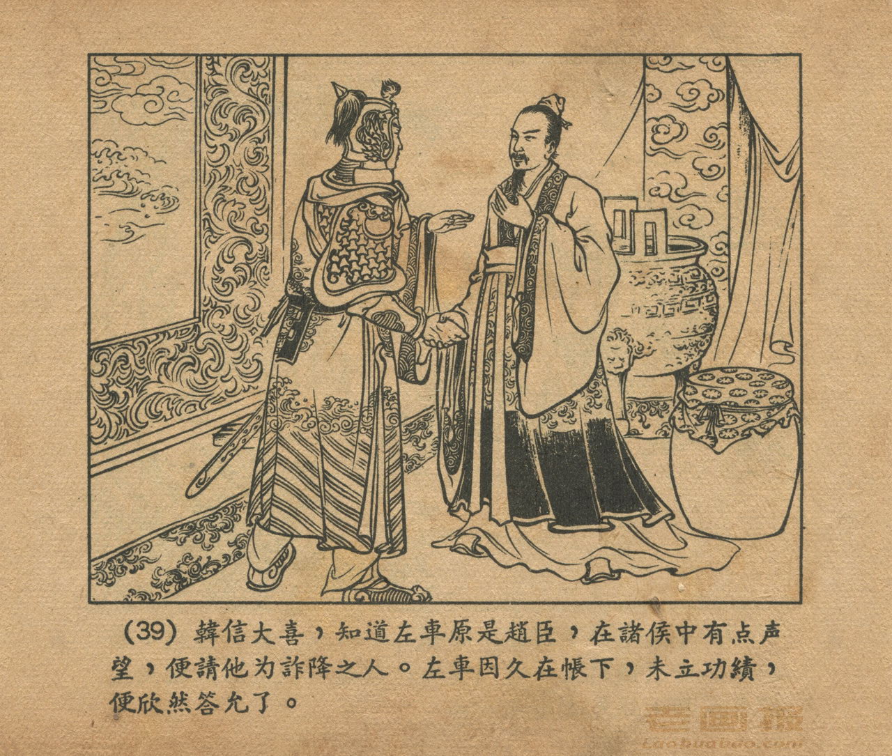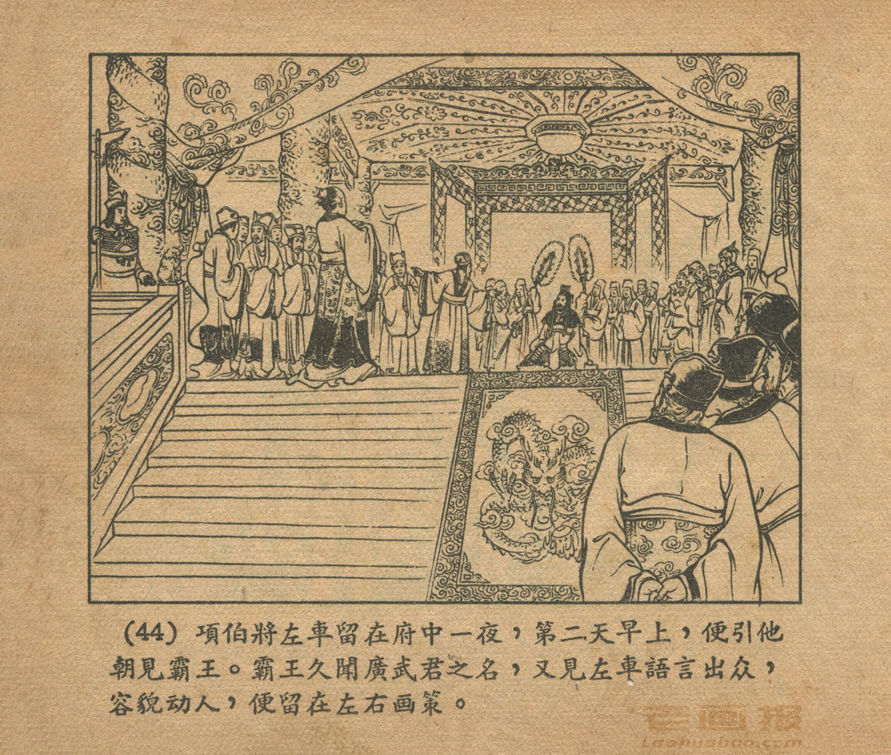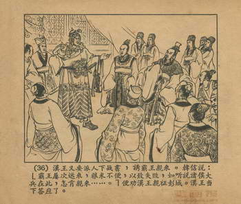 连环画《乌江自刎》 1958老版楚汉相争 第3页 编文:林林 绘画:李成勋 戴仁 上海人民美术出版社 1958 此连环画来源于连友“一步”藏书扫描,同意老画报网站免费发布。您可以自由分享、引用,但必须署名原作者,并不得用于商业目的。 1 2 3 4 5 6 7 8 9 目录 |<< < 上一页 下一页 > >>| 乌江自刎 共9页 < 上一页下一页 >