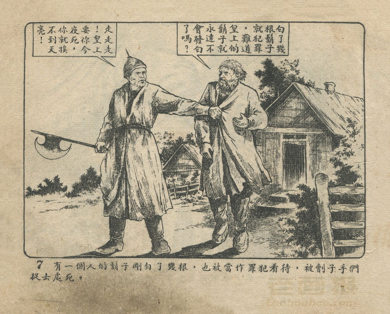 连环画《阿合买提和皇帝》 1954老版缺封底 原著:姆.谢尔维丁 编文:陆君平 绘画:苏起峰 华大书局 1954 此连环画来源于连友“一步”藏书扫描,同意老画报网站免费发布不做商用。您可以自由分享、引用,但必须署名原作者,并不得用于商业目的。 1 2 3 4 5 目录 |<< < 上一页 下一页 > >>| 阿合买提和皇帝 共5页 < 上一页下一页 >