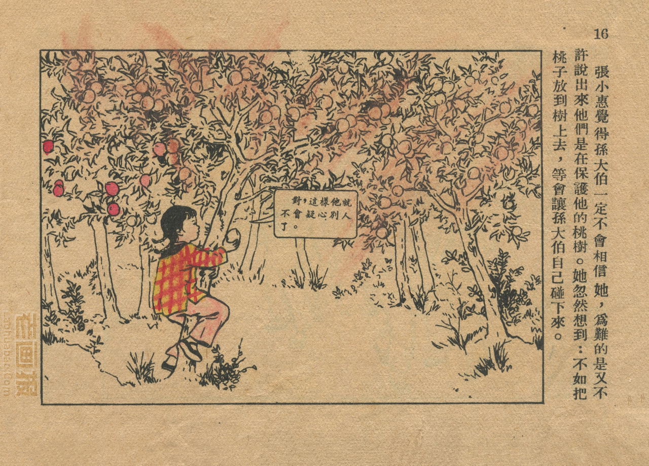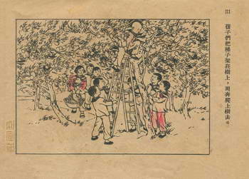 连环画《桃子熟了》 1953年老版残本 第2页 编文:徐光玉 绘画:丁深 华东人民美术出版社 1953 此连环画来源于连友“一步”藏书扫描,同意老画报网站免费发布。您可以自由分享、引用,但必须署名原作者,并不得用于商业目的。 1 2 3 目录 |<< < 上一页 下一页 > >>| 桃子熟了 共3页 < 上一页下一页 >