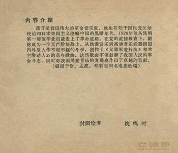 连环画《聂耳》 1964年残本缺页 编文:时常曙 绘画:梅崇源 辽宁美术出版社 1964 此连环画来源于连友“一步”藏书扫描,同意老画报网站免费发布。您可以自由分享、引用,但必须署名原作者,并不得用于商业目的。 1 2 3 4 5 目录 |<< < 上一页 下一页 > >>| 聂耳 共5页 < 上一页下一页 >