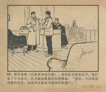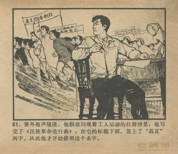连环画《聂耳》 1964年残本缺页 第4页 编文:时常曙 绘画:梅崇源 辽宁美术出版社 1964 此连环画来源于连友“一步”藏书扫描,同意老画报网站免费发布。您可以自由分享、引用,但必须署名原作者,并不得用于商业目的。 1 2 3 4 5 目录 |<< < 上一页 下一页 > >>| 聂耳 共5页 < 上一页下一页 >