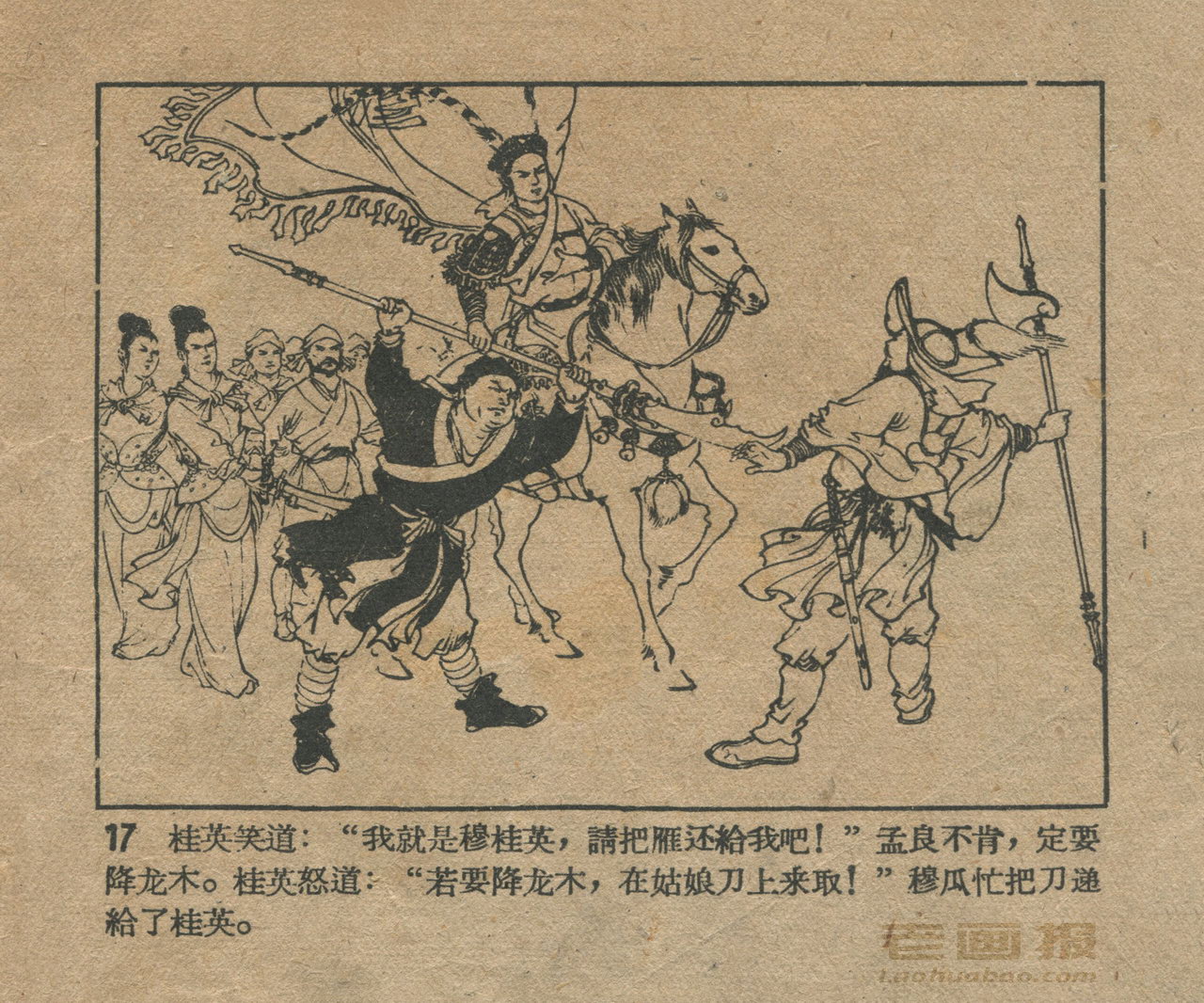 连环画《穆桂英》 1959年老版 第2页 编文:袁定基 绘画:陈惠冠 辽宁美术出版社 1960 此连环画来源于连友“一步”藏书扫描,同意老画报网站免费发布。您可以自由分享、引用,但必须署名原作者,并不得用于商业目的。 1 2 3 4 5 目录 |<< < 上一页 下一页 > >>| 穆桂英 共5页 < 上一页下一页 >