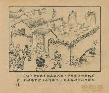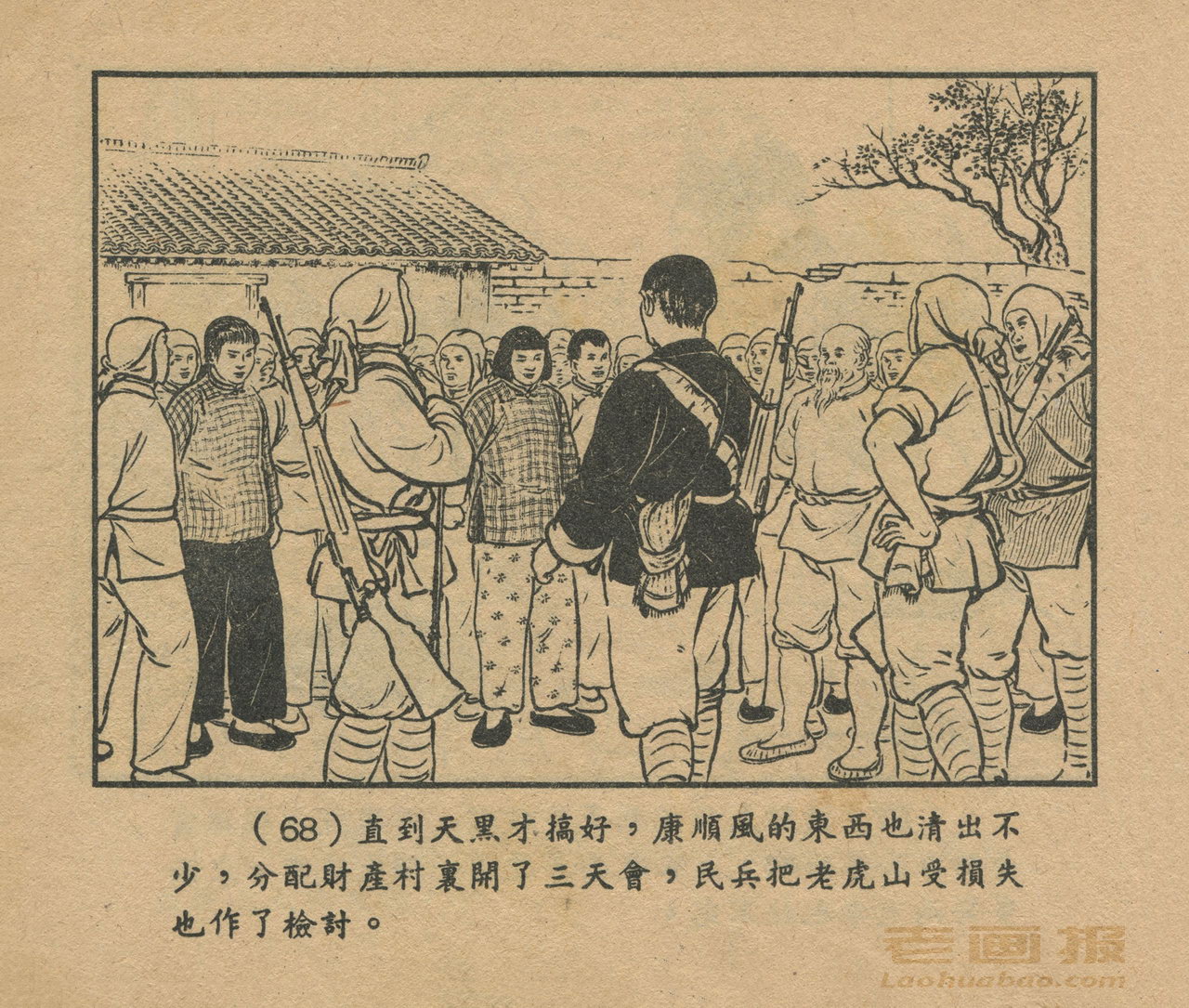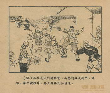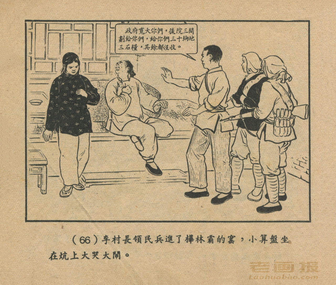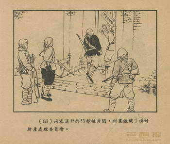 “呂梁英雄傳”是一部描写老解放区人民斗爭的好小說,作者馬烽、西戎,以晋绥边区呂梁山农民的对敌斗爭为主,生动地写出了惨無人道的日寇,丧心病狂的汉奸,陰險卑鄙的反动地主和頑固惡霸的罪惡行为;也写出了英勇智慧的农民,如何在共产觉的領导下組織起来,战胜了敌人。我們將这部小說改編成連环圖画,一共分为六本。这六本書,文字能歌能唱,每本都有一个中心的故事,可以集中一起閱讀,也可以分开来看。我們謹將这六本書献給亲爱的讀者。