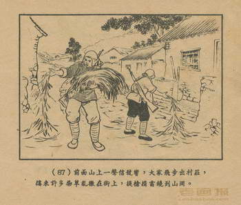 “呂梁英雄傳”是一部描写老解放区人民斗爭的好小說,作者馬烽、西戎,以晋绥边区呂梁山农民的对敌斗爭为主,生动地写出了惨無人道的日寇,丧心病狂的汉奸,陰險卑鄙的反动地主和頑固惡霸的罪惡行为;也写出了英勇智慧的农民,如何在共产觉的領导下組織起来,战胜了敌人。我們將这部小說改編成連环圖画,一共分为六本。这六本書,文字能歌能唱,每本都有一个中心的故事,可以集中一起閱讀,也可以分开来看。我們謹將这六本書献給亲爱的讀者。