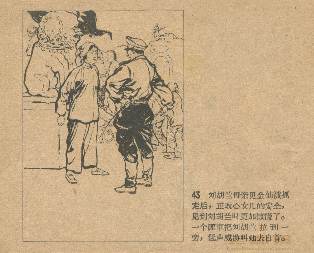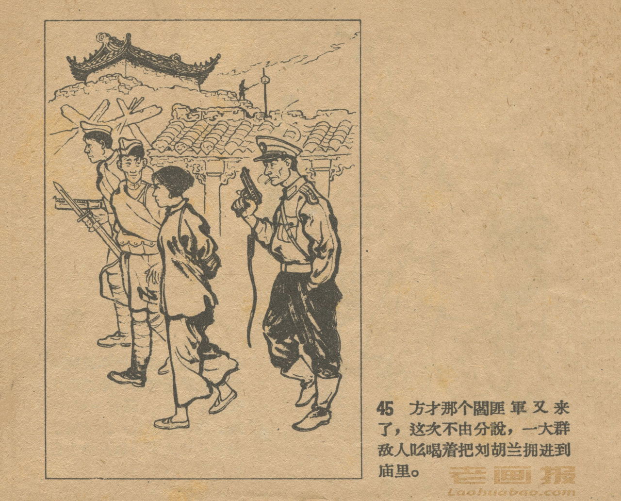 连环画《刘胡兰》 1958老版 第3页 根据梁星编写“刘胡兰小传” 绘画:姬寿彭 辽宁画报社 1958 此连环画来源于连友“一步”藏书扫描,同意老画报网站免费发布。您可以自由分享、引用,但必须署名原作者,并不得用于商业目的。 1 2 3 4 目录 |<< < 上一页 下一页 > >>| 刘胡兰 共4页 < 上一页下一页 >