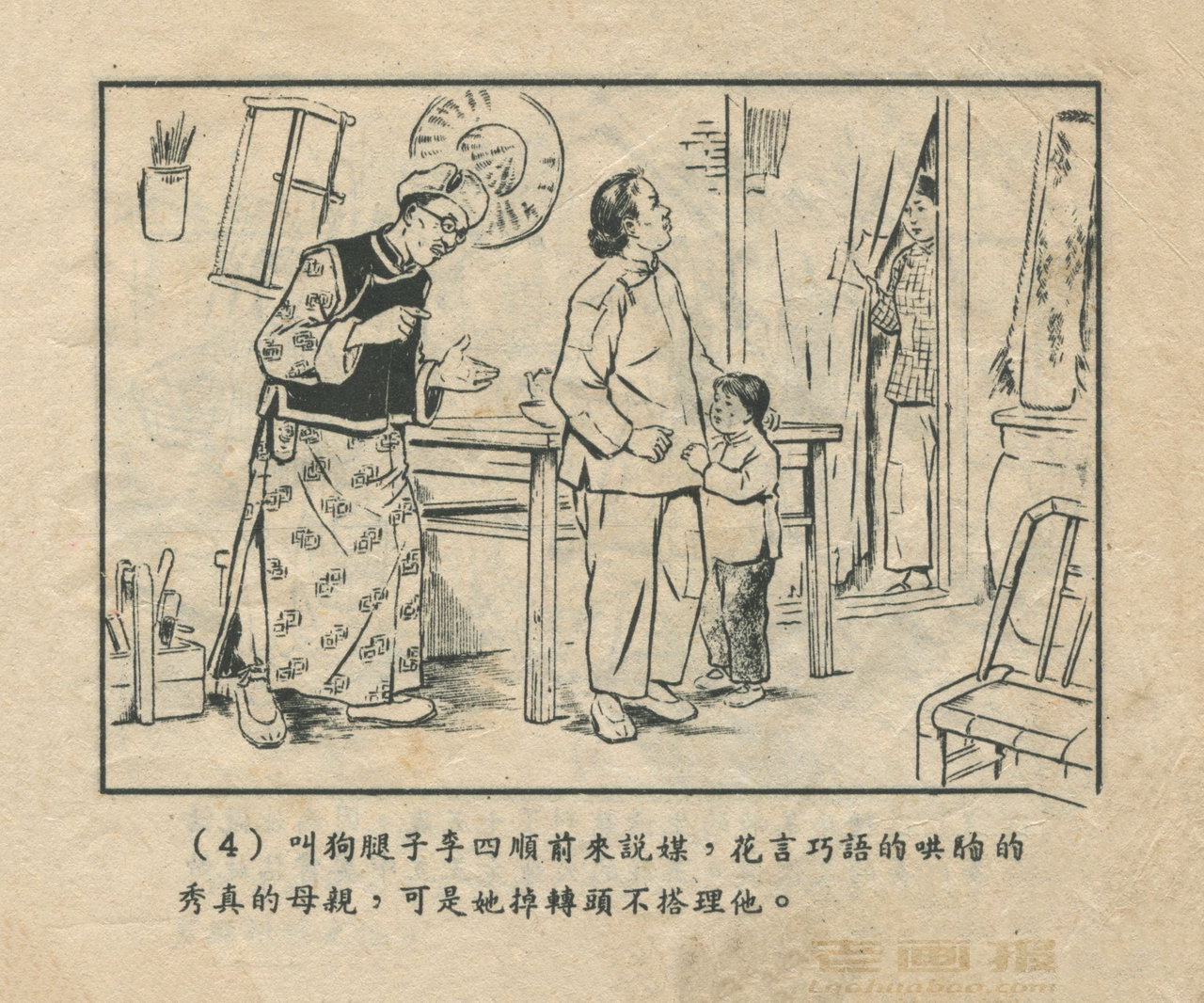 连环画《李秀真》 1953老版 绘画:汪健 凌涛 陈云昌 王一菲 新美术出版社 1953 此连环画来源于连友“一步”藏书扫描,同意老画报网站免费发布。您可以自由分享、引用,但必须署名原作者,并不得用于商业目的。 1 2 3 4 5 6 目录 |<< < 上一页 下一页 > >>| 李秀真 共6页 < 上一页下一页 >