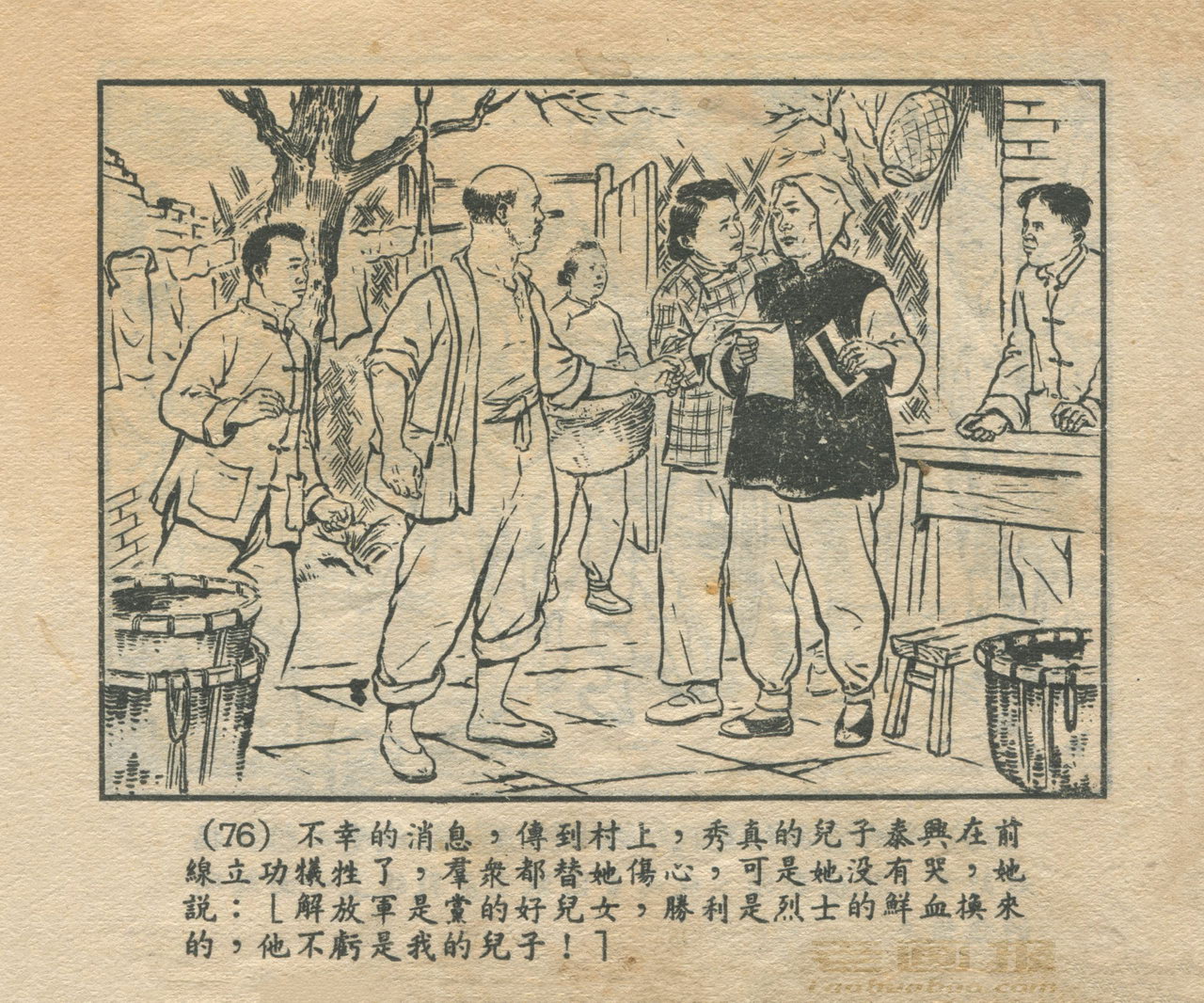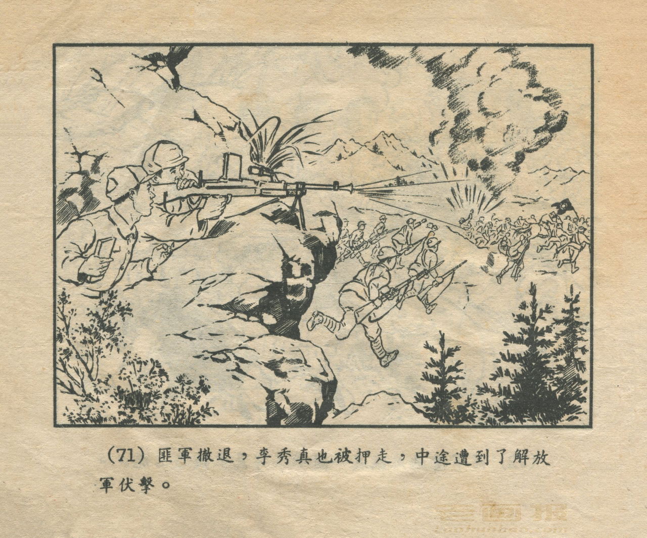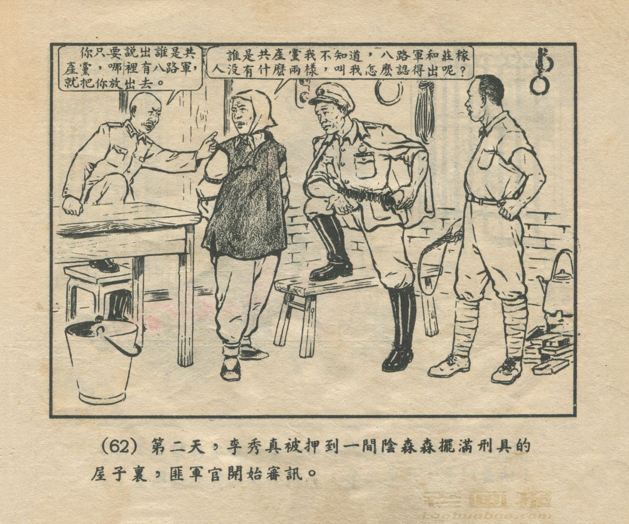 连环画《李秀真》 1953老版 第5页 绘画:汪健 凌涛 陈云昌 王一菲 新美术出版社 1953 此连环画来源于连友“一步”藏书扫描,同意老画报网站免费发布。您可以自由分享、引用,但必须署名原作者,并不得用于商业目的。 1 2 3 4 5 6 目录 |<< < 上一页 下一页 > >>| 李秀真 共6页 < 上一页下一页 >