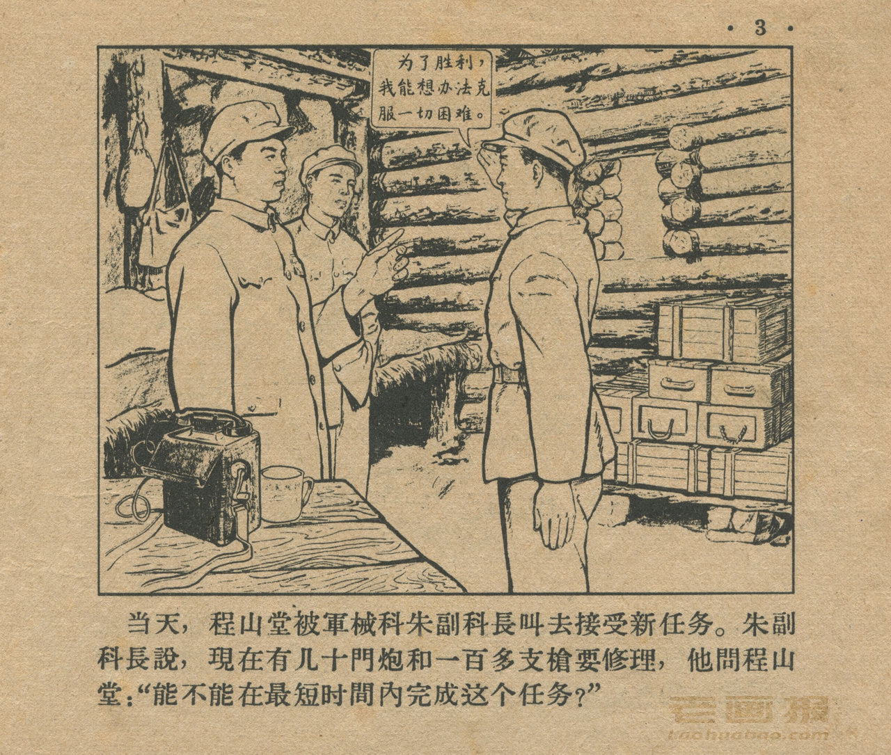连环画《战地兵工厂厂长》 1958年老版 编文:唐剑 绘画:陈云华 人民美术出版社 1958 此连环画来源于连友“一步”藏书扫描,同意老画报网站免费发布。您可以自由分享、引用,但必须署名原作者,并不得用于商业目的。 1 2 3 目录 |<< < 上一页 下一页 > >>| 战地兵工厂厂长 共3页 < 上一页下一页 >
