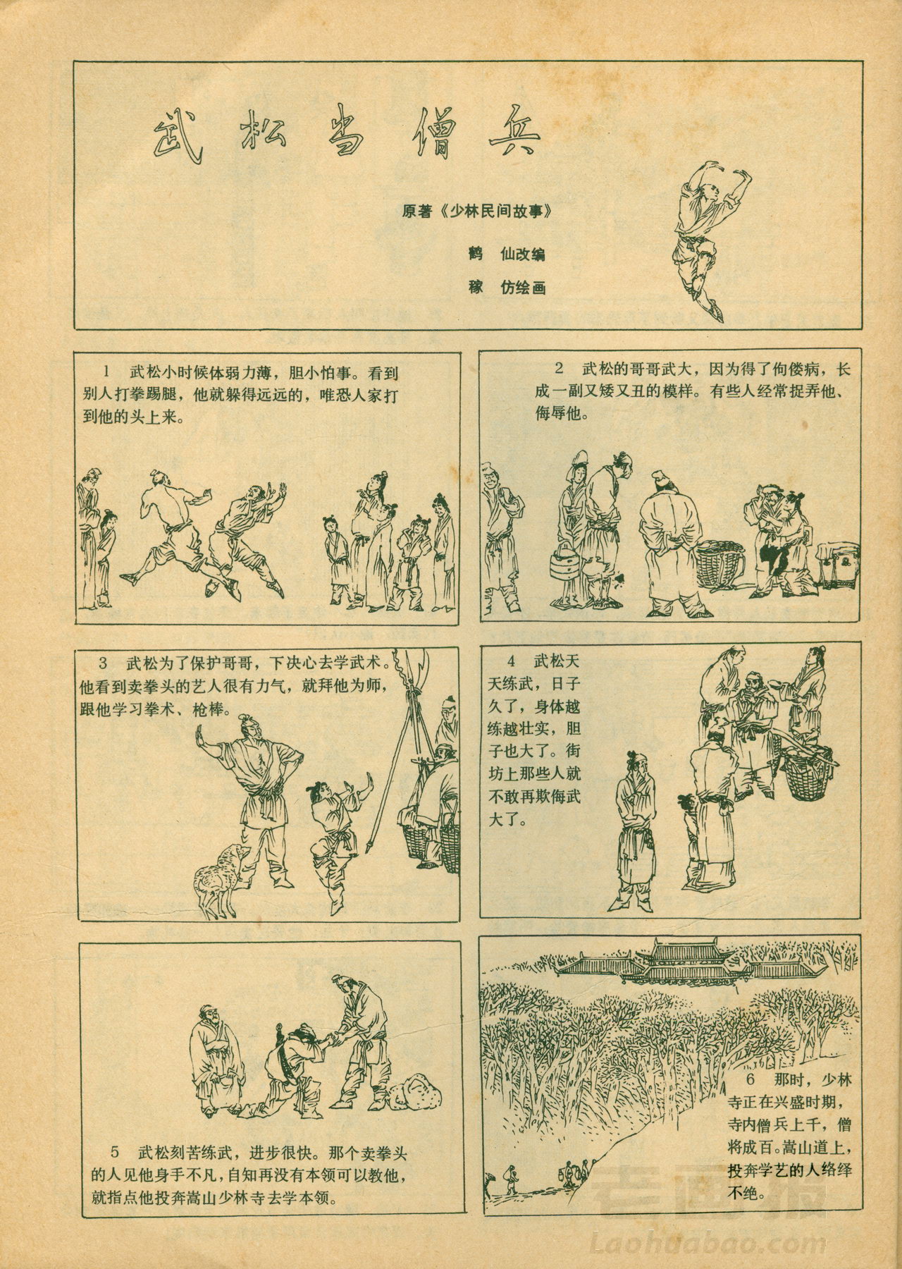 连环画 《武松当僧兵》 原著:《少林民间故事》 编文:鹤仙 绘画:稼仿 万花筒画报 1984年第5期 老画报网藏书扫描制作 转载请注明出处 1 2 3 4 5 6 目录 |<< < 上一页 下一页 > >>| 武松当僧兵 < 上一页下一页 >