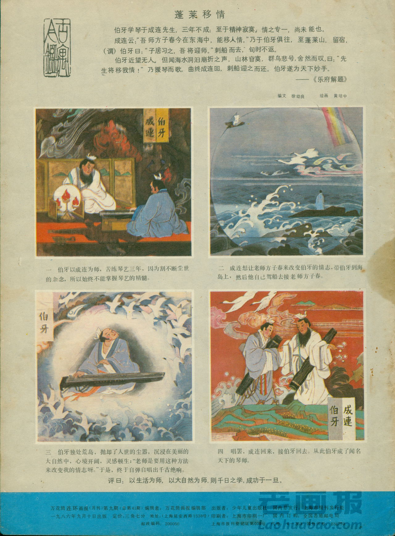 连环画 《蓬莱移情》 古寓今画 编文:徐幼良 绘画:黄培中 万花筒画报 1986年第9期 老画报网藏书扫描制作 转载请注明出处 目录 |<< < 上一页 下一页 > >>| 蓬莱移情 古寓今画 < 上一页下一页 >