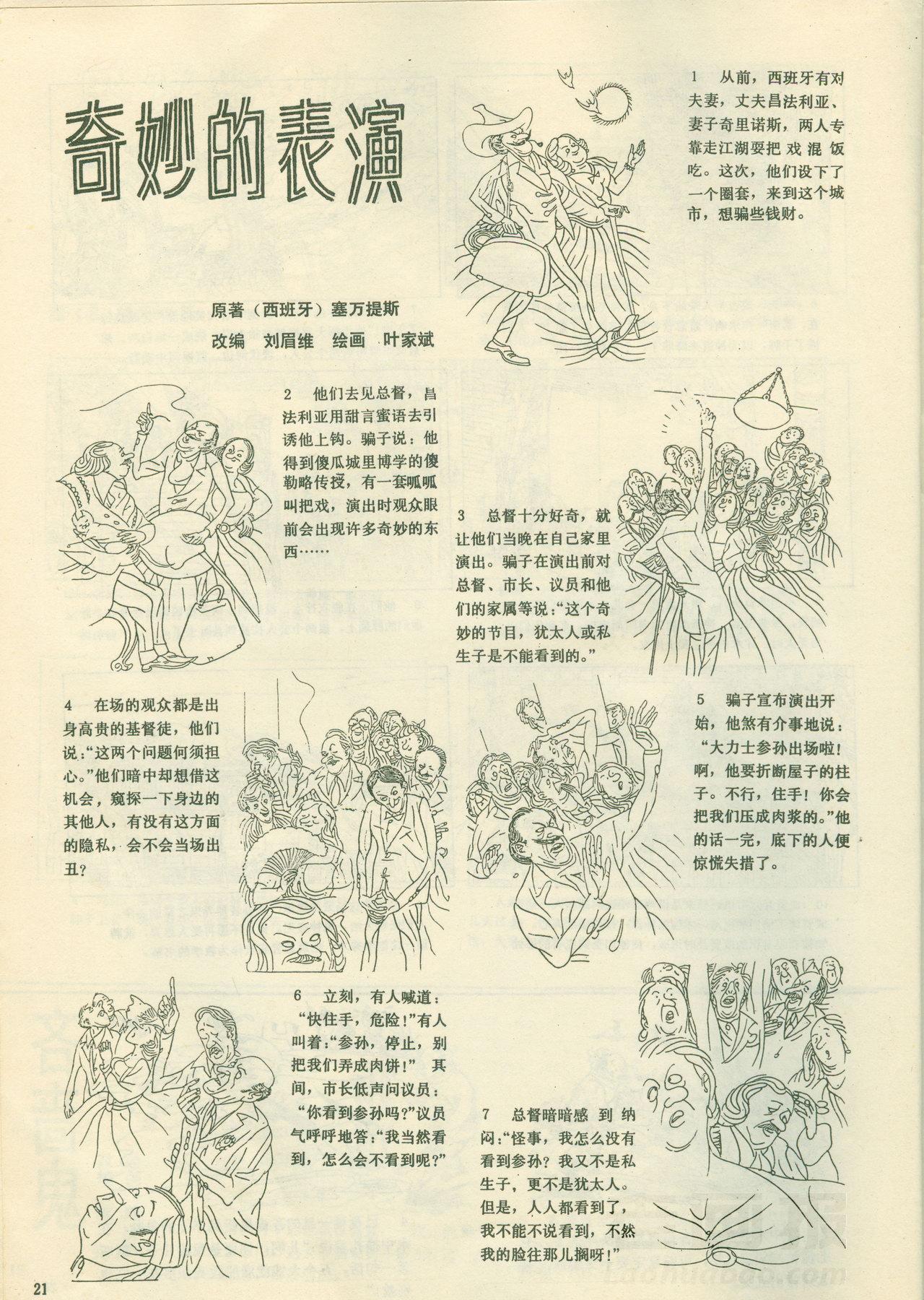 连环画 《奇妙的表演》 原著:(西班牙)塞万提斯 编文:刘眉维 绘画:叶家斌 万花筒连环画报 1987年第12期 老画报网藏书扫描制作 转载请注明出处 1 2 目录 |<< < 上一页 下一页 > >>| 奇妙的表演 < 上一页下一页 >