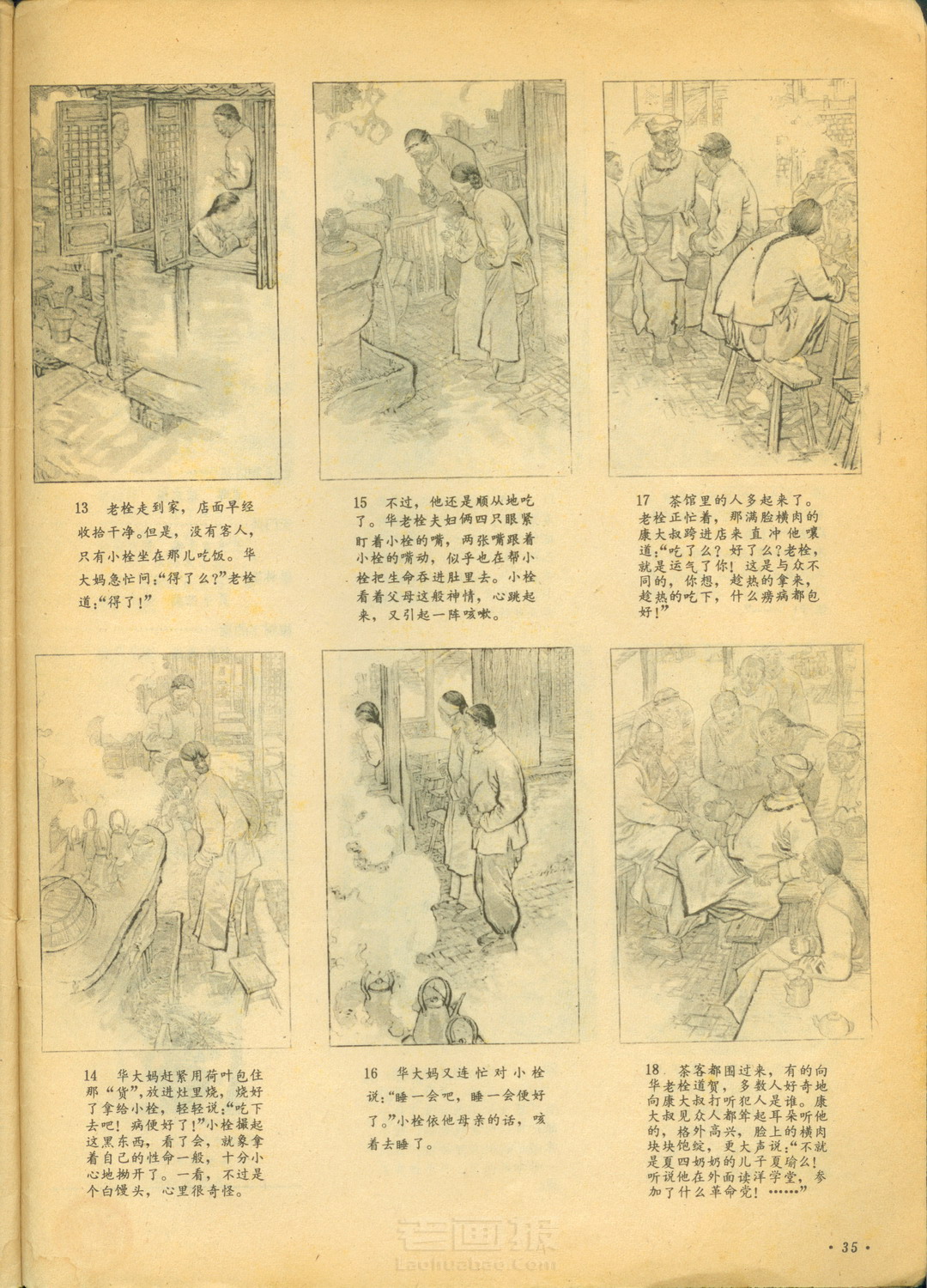 连环画 《药》 第3页 原著:鲁迅 编文:吴其柔 绘画:韩和平,郑家声 连环画报 1979年第5期 老画报网藏书扫描制作 转载请注明出处 《药》是鲁迅先生早期的一篇著名小说,写于一九一九年四月,也即伟大的“五四”运动将要爆发的时刻,并于同年五月发表在《新青年》杂志的“纪念马克思”专号上。 1 2 3 4 5 6 目录 |<< < 上一页 下一页 > >>| 药 < 上一页下一页 >