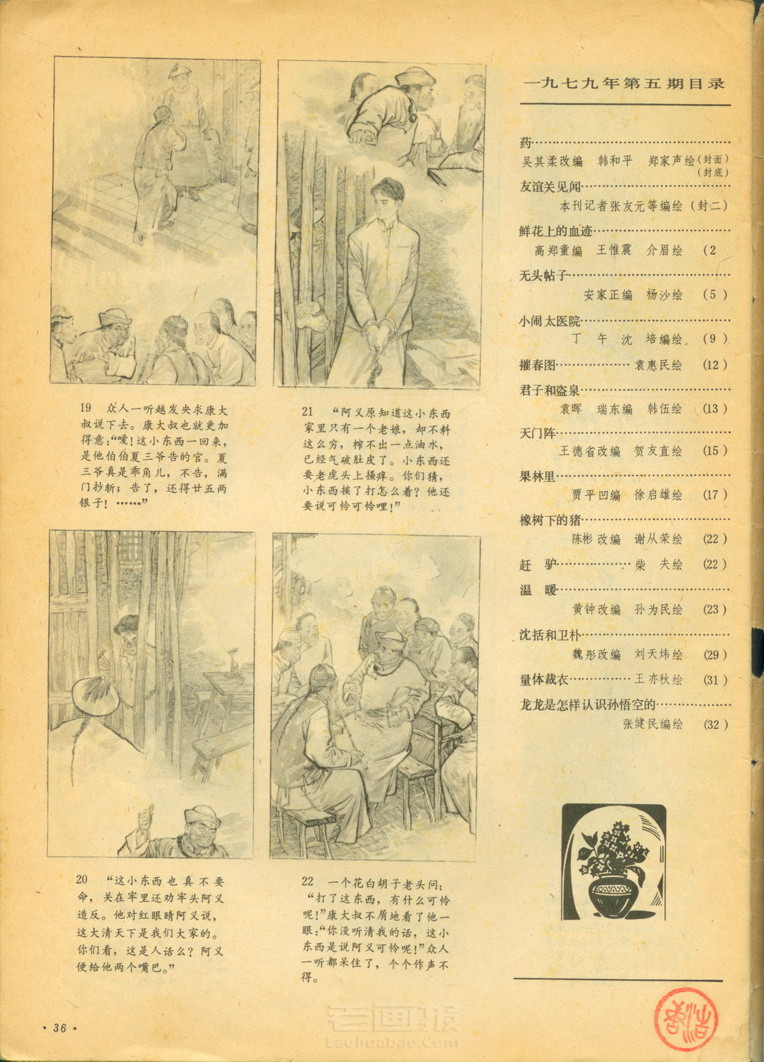 连环画 《药》 第4页 原著:鲁迅 编文:吴其柔 绘画:韩和平,郑家声 连环画报 1979年第5期 老画报网藏书扫描制作 转载请注明出处 《药》是鲁迅先生早期的一篇著名小说,写于一九一九年四月,也即伟大的“五四”运动将要爆发的时刻,并于同年五月发表在《新青年》杂志的“纪念马克思”专号上。 1 2 3 4 5 6 目录 |<< < 上一页 下一页 > >>| 药 < 上一页下一页 >