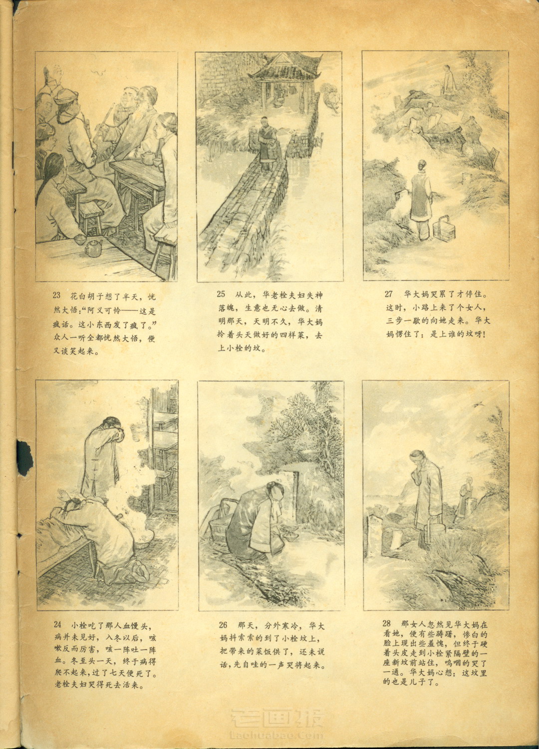 连环画 《药》 第5页 原著:鲁迅 编文:吴其柔 绘画:韩和平,郑家声 连环画报 1979年第5期 老画报网藏书扫描制作 转载请注明出处 《药》是鲁迅先生早期的一篇著名小说,写于一九一九年四月,也即伟大的“五四”运动将要爆发的时刻,并于同年五月发表在《新青年》杂志的“纪念马克思”专号上。 1 2 3 4 5 6 目录 |<< < 上一页 下一页 > >>| 药 < 上一页下一页 >