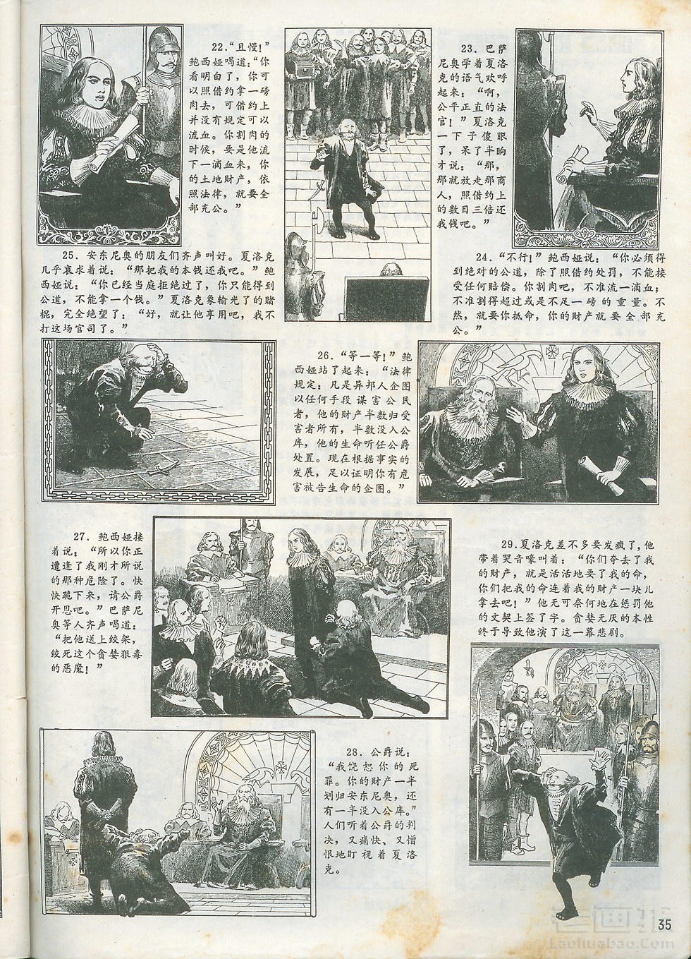 连环画 《夏洛克的悲剧》 第4页 原著:[英]莎士比亚 编文:傅杰 绘画:孙愚 工农兵画报 1979年第3期 老画报网藏书扫描制作 转载请注明出处 1 2 3 4 目录 |<< < 上一页 下一页 > >>| 夏洛克的悲剧 < 上一页下一页 >