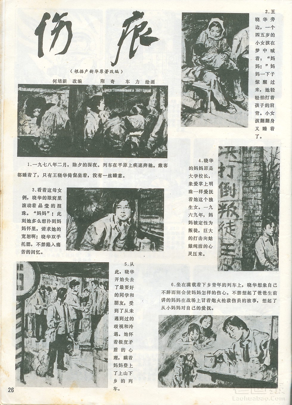 连环画 《伤痕》 原著:卢新华 编文:何培新 绘画:隋奇,车力 工农兵画报 1979年第3期 老画报网藏书扫描制作 转载请注明出处 1 2 3 4 5 6 目录 |<< < 上一页 下一页 > >>| 伤痕 < 上一页下一页 >