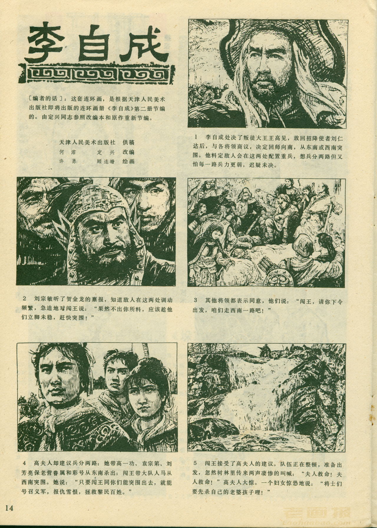 连环画 《李自成(第二册节编)》 编文:何溶 定兴 绘画:许勇 顾连塘 河北画刊 1978年第5期 老画报网藏书扫描制作 转载请注明出处 1 2 3 4 5 目录 |<< < 上一页 下一页 > >>| 李自成(第二册节编) < 上一页下一页 >