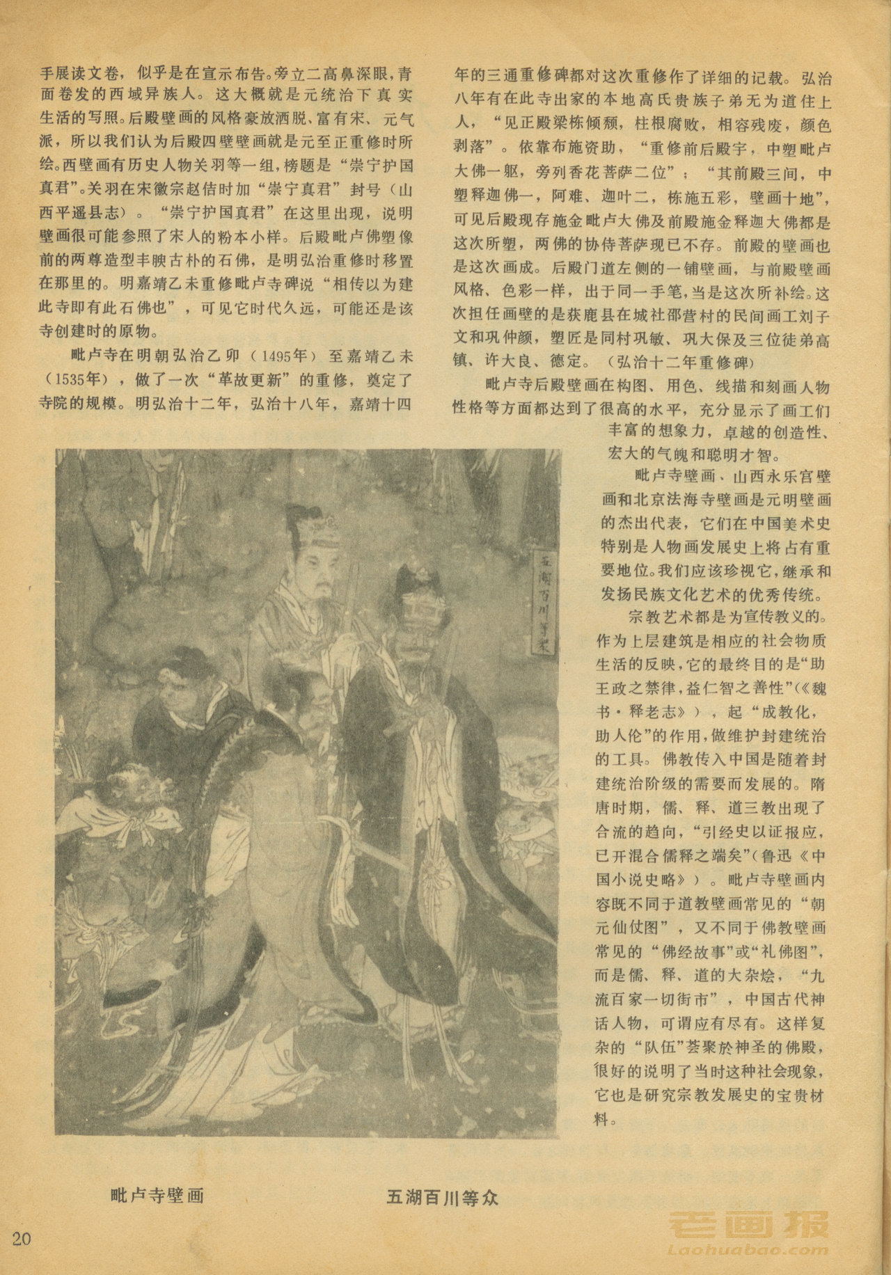 毘卢寺壁画(1979) 毗卢寺 第4页 河北画刊 1979年第5期 老画报网藏书扫描制作 转载请注明出处 1 2 3 4 5 6 目录 |<< < 上一页 下一页 > >>| 毘卢寺壁画(1979) 毗卢寺 < 上一页下一页 >