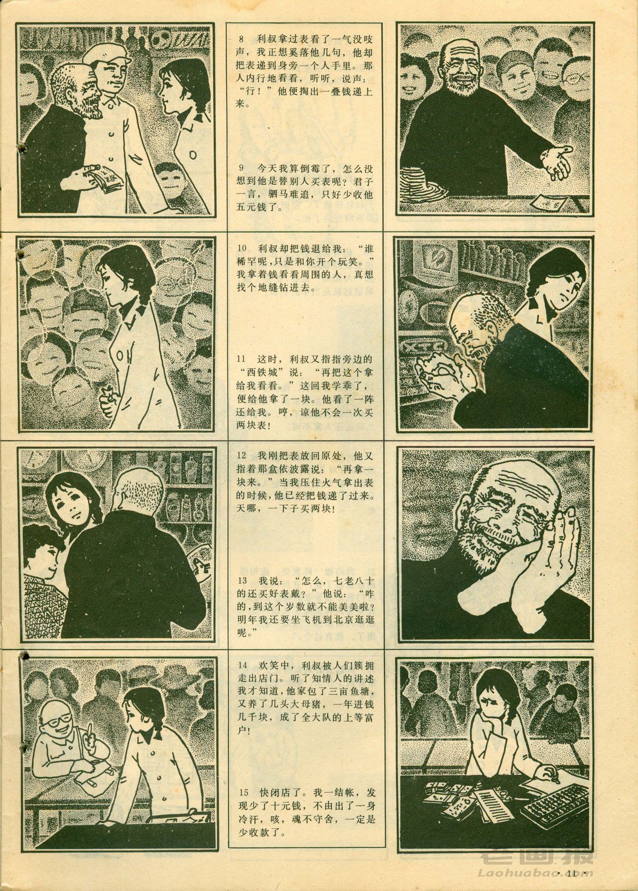 连环画 《利叔买表》 第2页 作者:冯峥 编绘:李秀岭 农民画报 1984年第5期 老画报网藏书扫描制作 转载请注明出处 1 2 3 目录 |<< < 上一页 下一页 > >>| 利叔买表 < 上一页下一页 >
