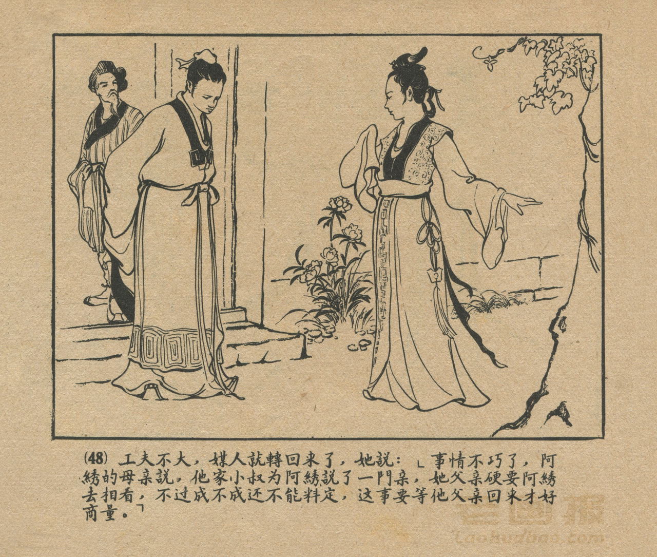 连环画《阿绣》 1958老版聊斋故事 第4页 原著:蒲松龄 编文:江虹 绘画:陈殿栋 天津美术出版社 1958 此连环画来源于连友“一步”藏书扫描,同意老画报网站免费发布不做商用。您可以自由分享、引用,但必须署名原作者,并不得用于商业目的。 1 2 3 4 5 目录 |<< < 上一页 下一页 > >>| 阿绣 共5页 < 上一页下一页 >