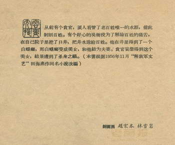 连环画《白螺仙子》 1959老版 原著:田海燕 编文:吉志西 绘画:吕品 上海人民美术出版社 1959 此连环画来源于连友“一步”藏书扫描,同意老画报网站免费发布不做商用。您可以自由分享、引用,但必须署名原作者,并不得用于商业目的。 1 2 3 4 5 目录 |<< < 上一页 下一页 > >>| 白螺仙子 共5页 < 上一页下一页 >