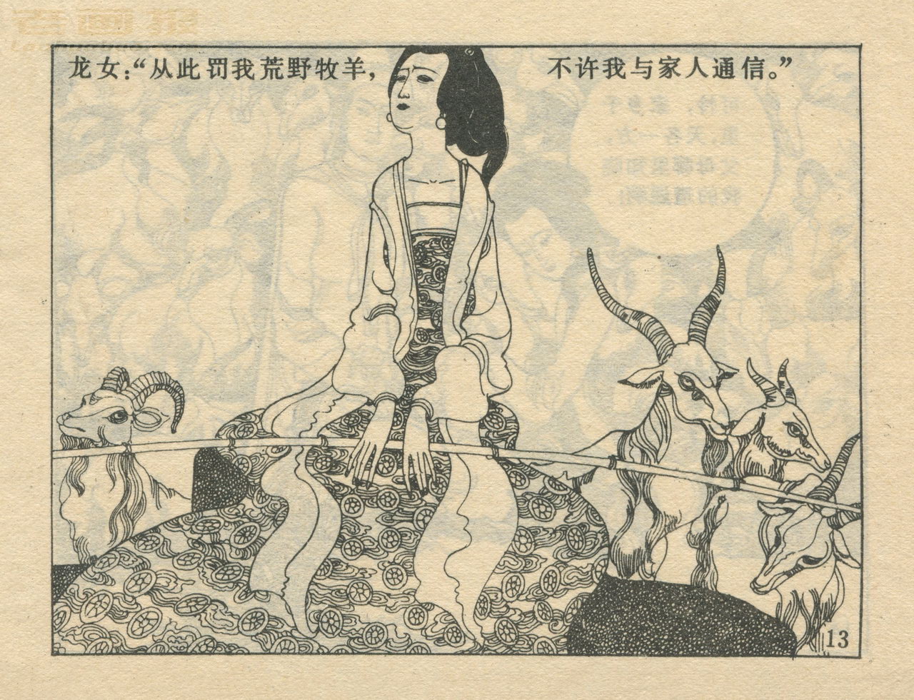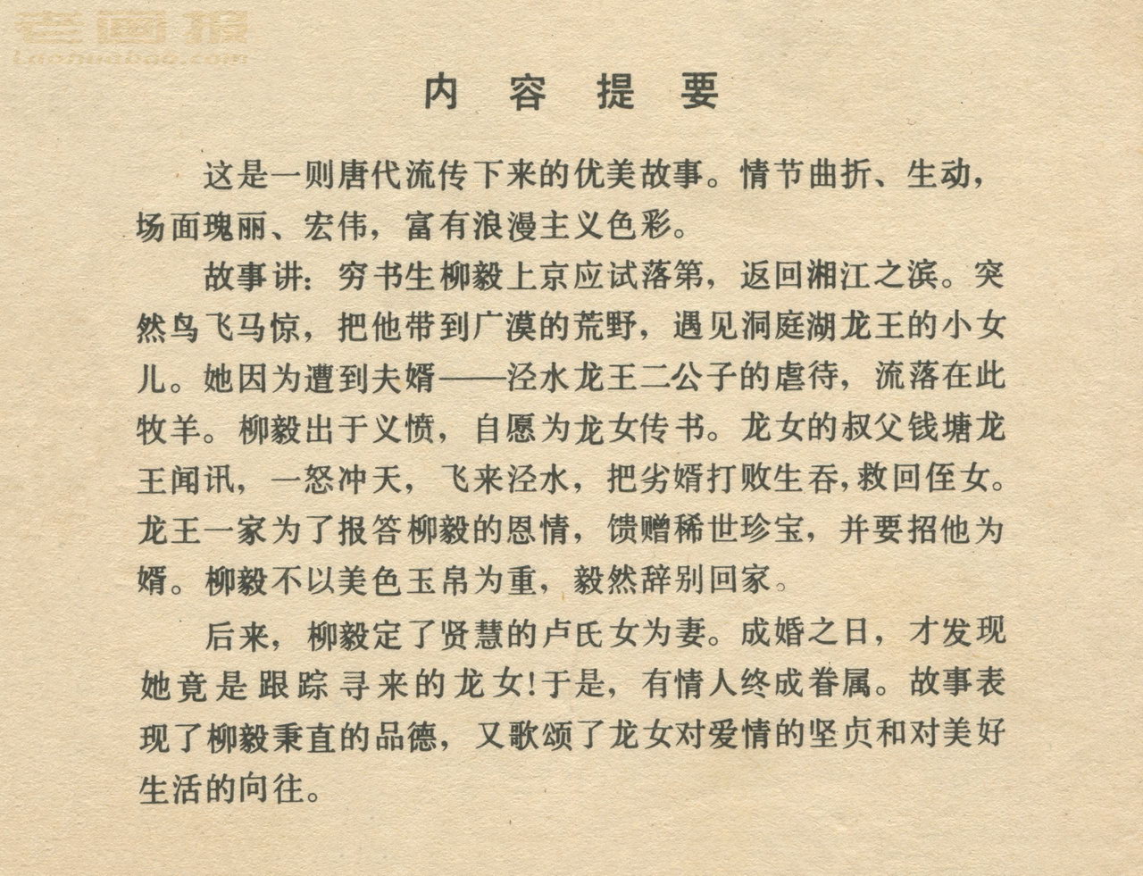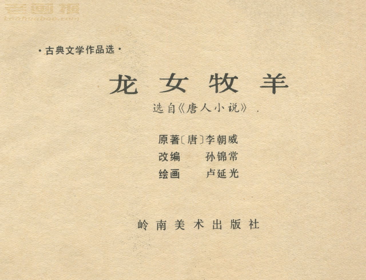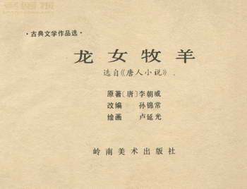连环画《龙女牧羊》 1983版获奖 原著:[唐]李朝威《唐人小说》 编文:孙锦常 绘画:卢延光 岭南美术出版社 1983 此连环画来源于连友“一步”藏书扫描,同意老画报网站免费发布。您可以自由分享、引用,但必须署名原作者,并不得用于商业目的。 本作品荣获第三届全国连环画评奖绘画二等奖。古典文学作品选。 1 2 3 4 5 6 7 8 目录 |<< < 上一页 下一页 > >>| 龙女牧羊 共8页 < 上一页下一页 >