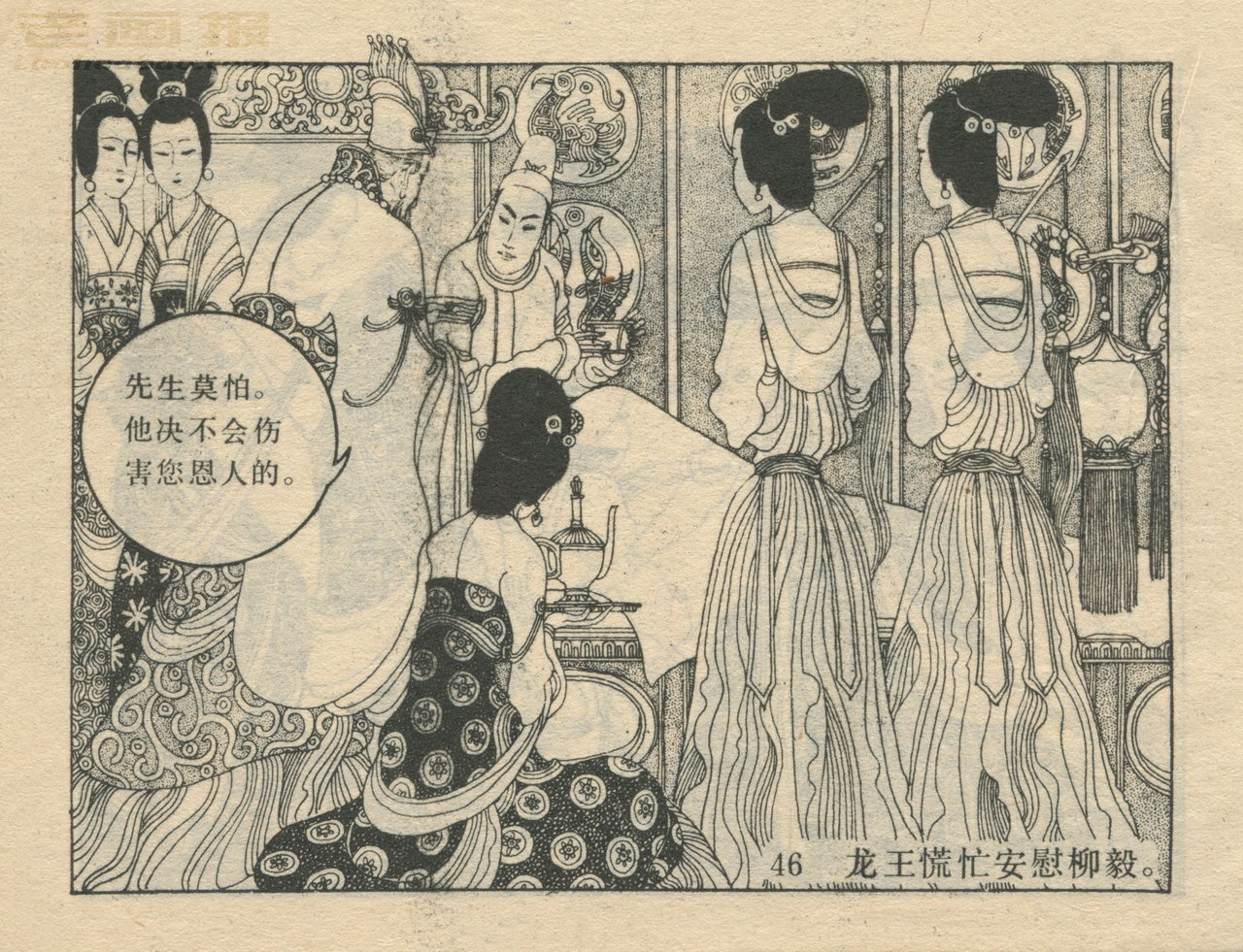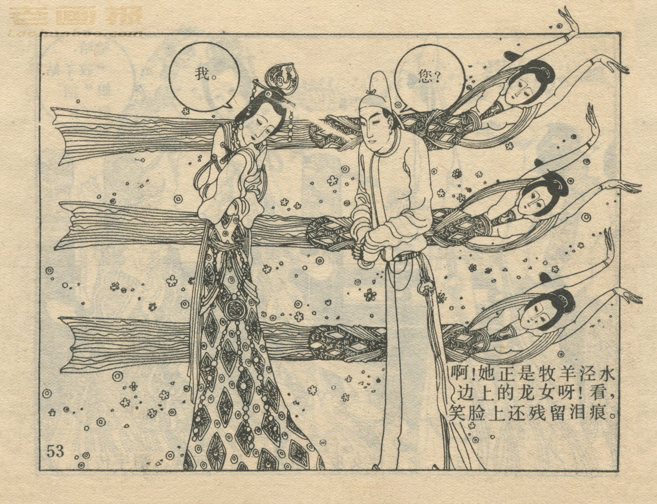 连环画《龙女牧羊》 1983版获奖 第4页 原著:[唐]李朝威《唐人小说》 编文:孙锦常 绘画:卢延光 岭南美术出版社 1983 此连环画来源于连友“一步”藏书扫描,同意老画报网站免费发布。您可以自由分享、引用,但必须署名原作者,并不得用于商业目的。 本作品荣获第三届全国连环画评奖绘画二等奖。古典文学作品选。 1 2 3 4 5 6 7 8 目录 |<< < 上一页 下一页 > >>| 龙女牧羊 共8页 < 上一页下一页 >
