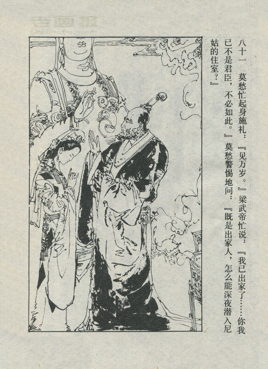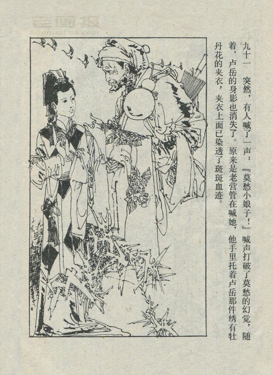 连环画《莫愁女》 1983老版 第6页 根据同名电影剧本 编文:袁海廷 绘画:吴绪经 漓江出版社 1983 此连环画来源于连友“一步”藏书扫描,同意老画报网站免费发布。您可以自由分享、引用,但必须署名原作者,并不得用于商业目的。 1 2 3 4 5 6 7 目录 |<< < 上一页 下一页 > >>| 莫愁女 共7页 < 上一页下一页 >