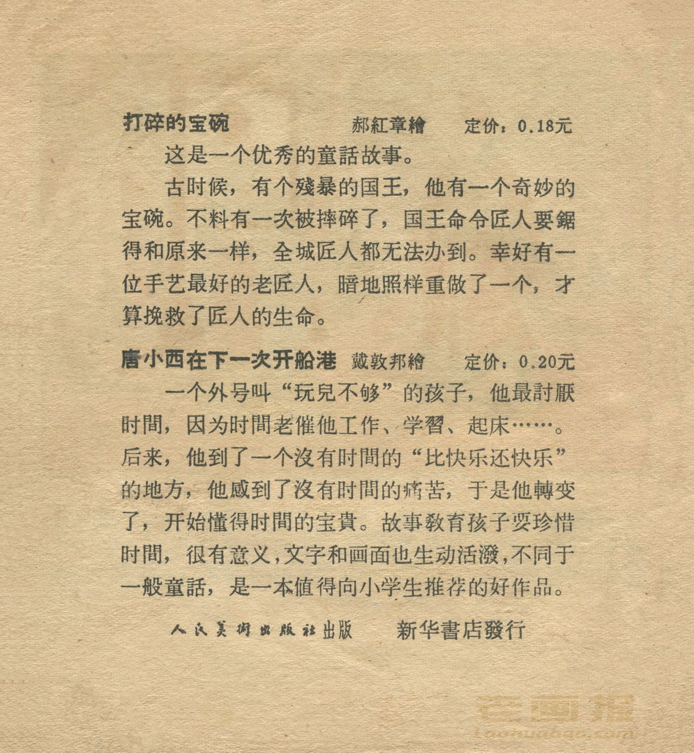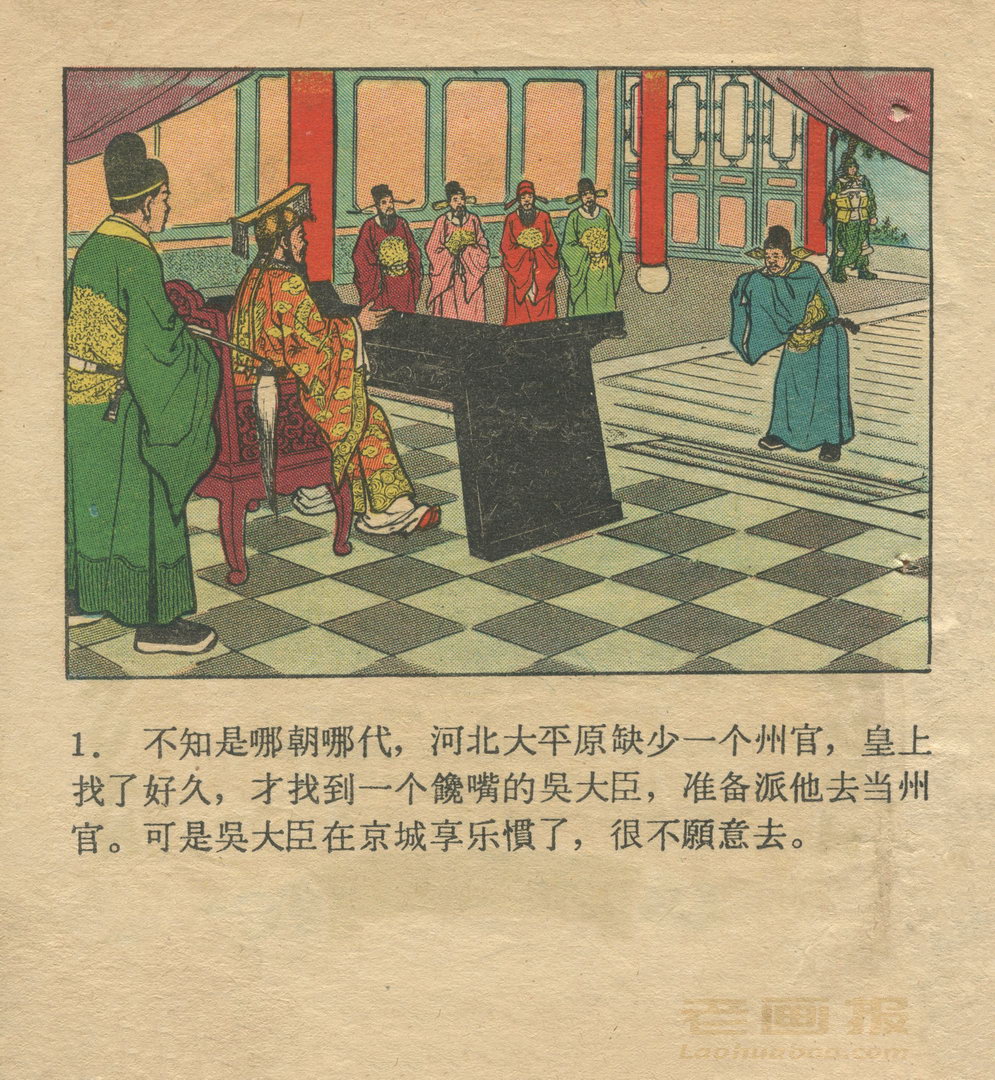连环画《灶王爷》 《肥国王》1959老版 根据民间故事 编文:谢进新 张金禄 绘画:徐余兴 人民美术出版社 1959 此连环画来源于连友“一步”藏书扫描,同意老画报网站免费发布。您可以自由分享、引用,但必须署名原作者,并不得用于商业目的。 1 2 3 4 5 目录 |<< < 上一页 下一页 > >>| 灶王爷 共5页 < 上一页下一页 >