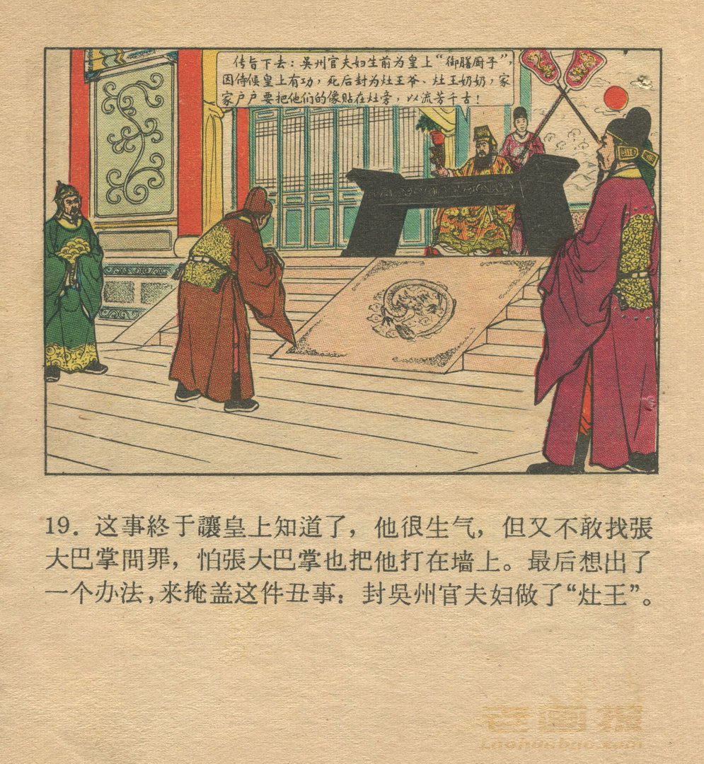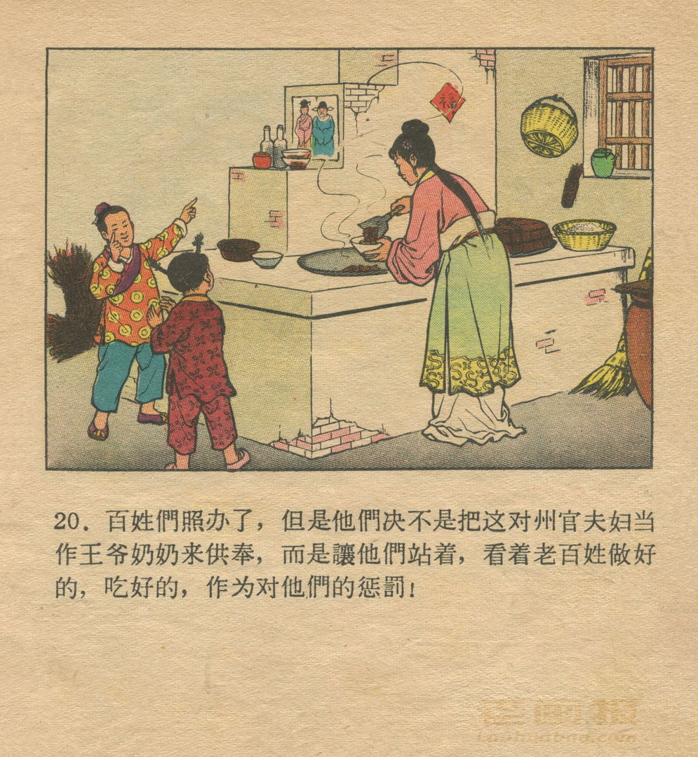 连环画《灶王爷》 《肥国王》1959老版 第2页 根据民间故事 编文:谢进新 张金禄 绘画:徐余兴 人民美术出版社 1959 此连环画来源于连友“一步”藏书扫描,同意老画报网站免费发布。您可以自由分享、引用,但必须署名原作者,并不得用于商业目的。 1 2 3 4 5 目录 |<< < 上一页 下一页 > >>| 灶王爷 共5页 < 上一页下一页 >