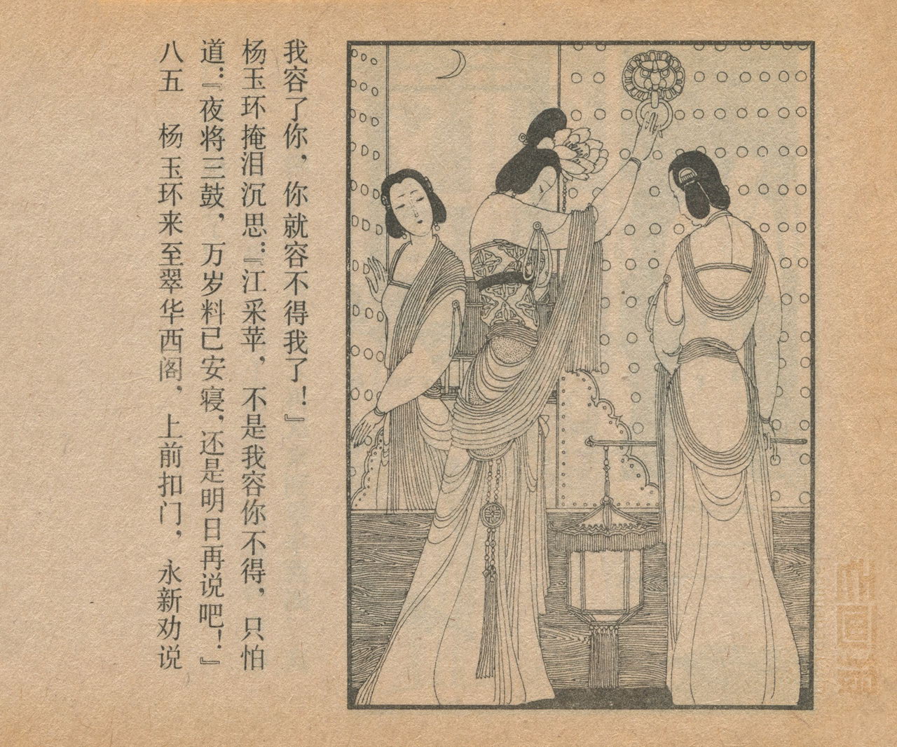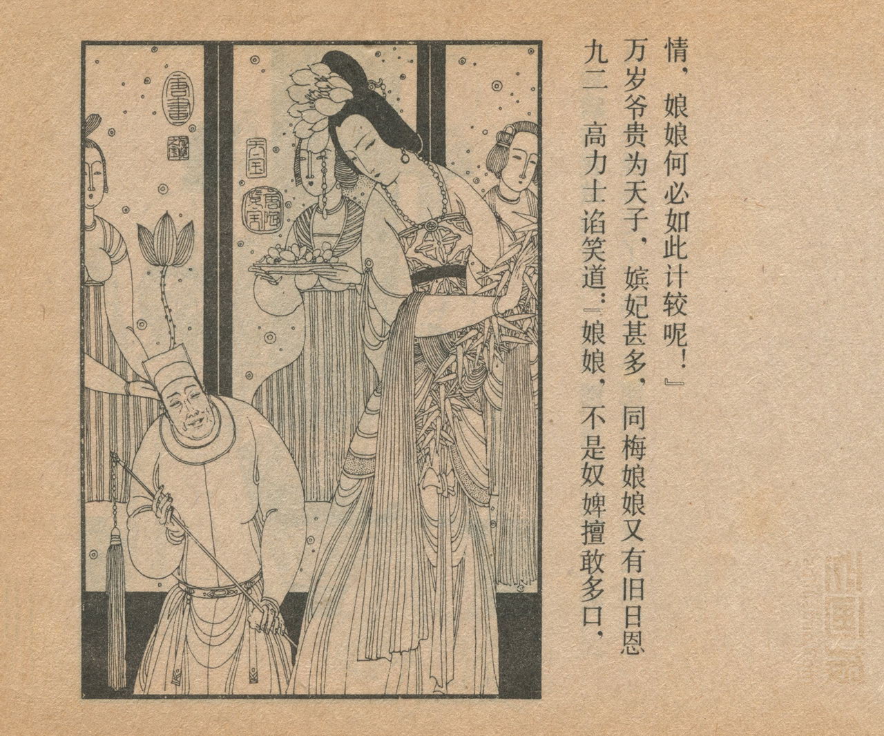 连环画《长生殿》 1985版 第5页 原著:[清]洪昇 编文:闻起 绘画:卢延光 中国戏剧出版社 1985 此连环画来源于连友“一步”藏书扫描,同意老画报网站免费发布。您可以自由分享、引用,但必须署名原作者,并不得用于商业目的。 中国古典戏曲名著 01 02 03 04 05 06 07 08 09 10 … 目录 |<< < 上一页 下一页 > >>| 长生殿 共10页 < 上一页下一页 >