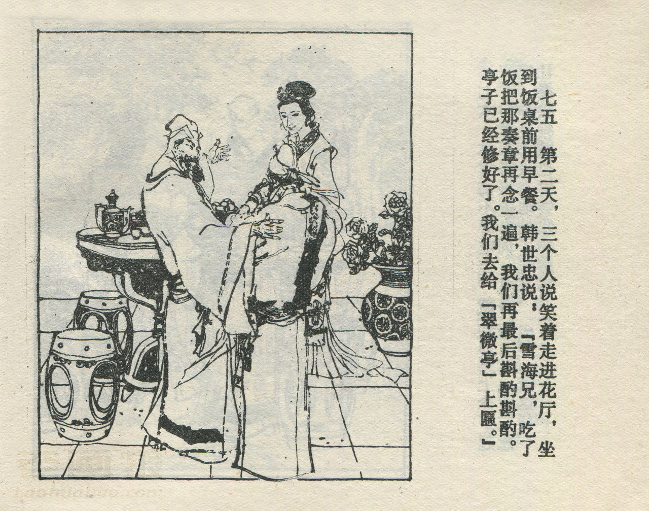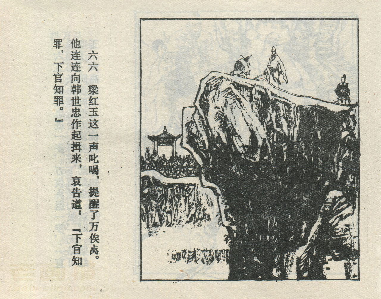 连环画《翠微亭》 1983老版 第5页 编文:李遵义 绘画:施大畏 庞先健 河北美术出版社 1983 此连环画来源于连友“一步”藏书扫描,同意老画报网站免费发布不做商用。您可以自由分享、引用,但必须署名原作者,并不得用于商业目的。 1 2 3 4 5 6 目录 |<< < 上一页 下一页 > >>| 翠微亭 共6页 < 上一页下一页 >