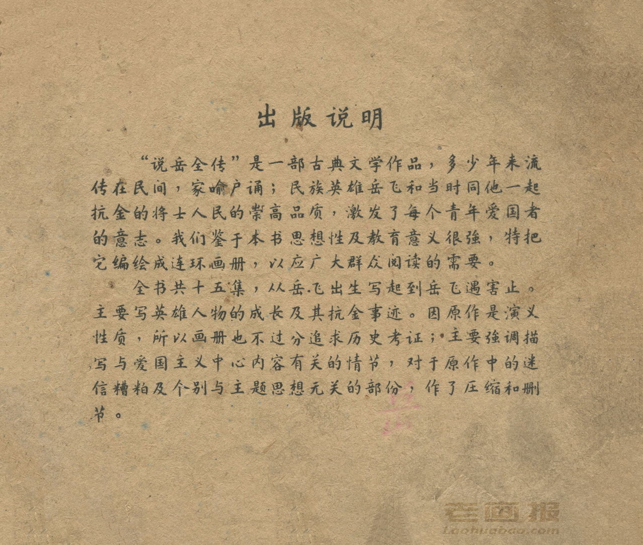 连环画《大战爱华山》 1957老版岳传 根据说岳全传 绘画:杨青华 人民美术出版社 1958 此连环画来源于连友“一步”藏书扫描,同意老画报网站免费发布不做商用。您可以自由分享、引用,但必须署名原作者,并不得用于商业目的。 1 2 3 4 5 6 目录 |<< < 上一页 下一页 > >>| 大战爱华山 共6页 < 上一页下一页 >