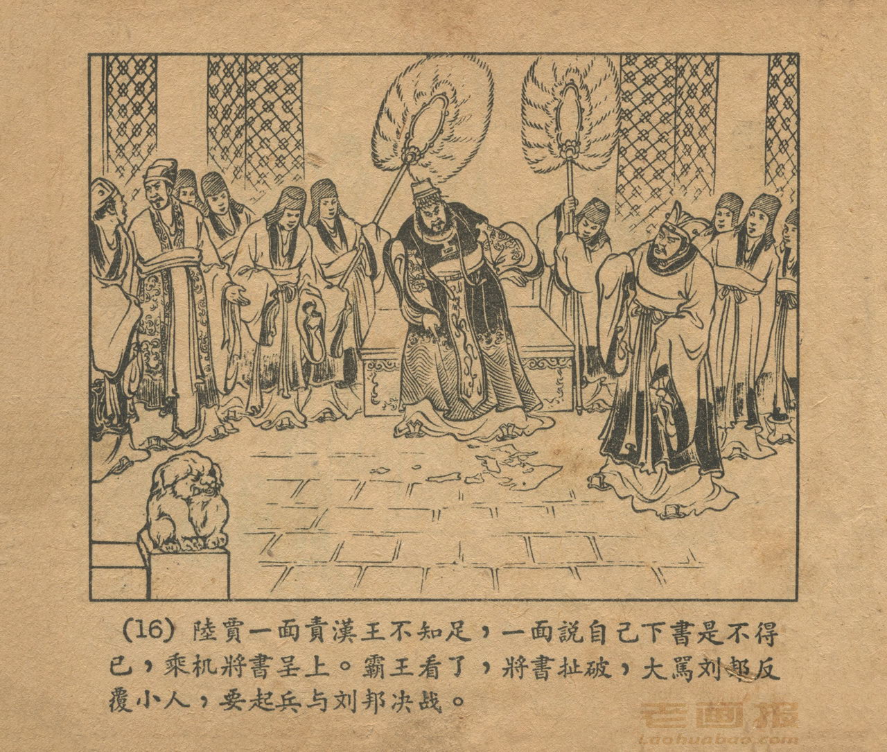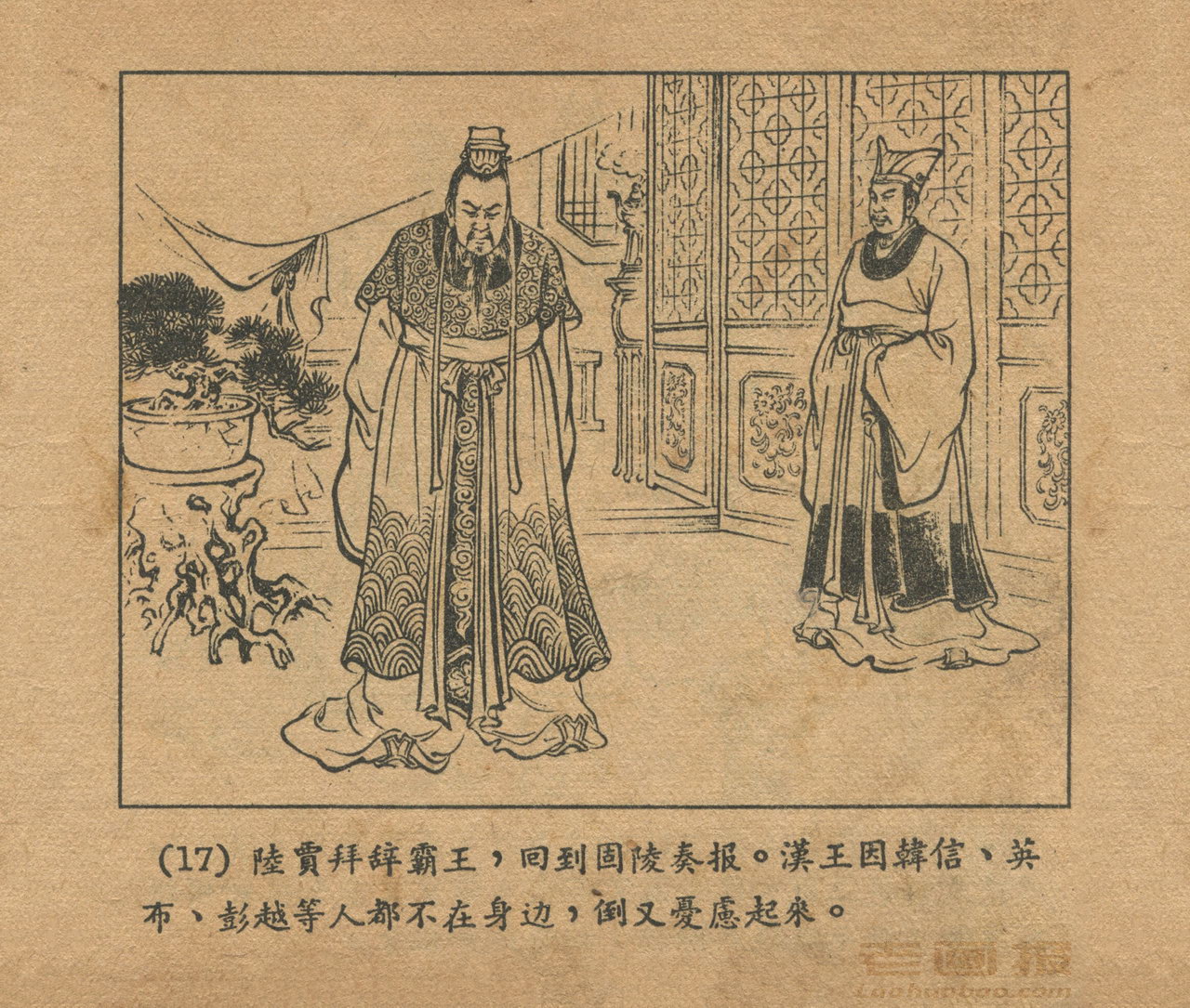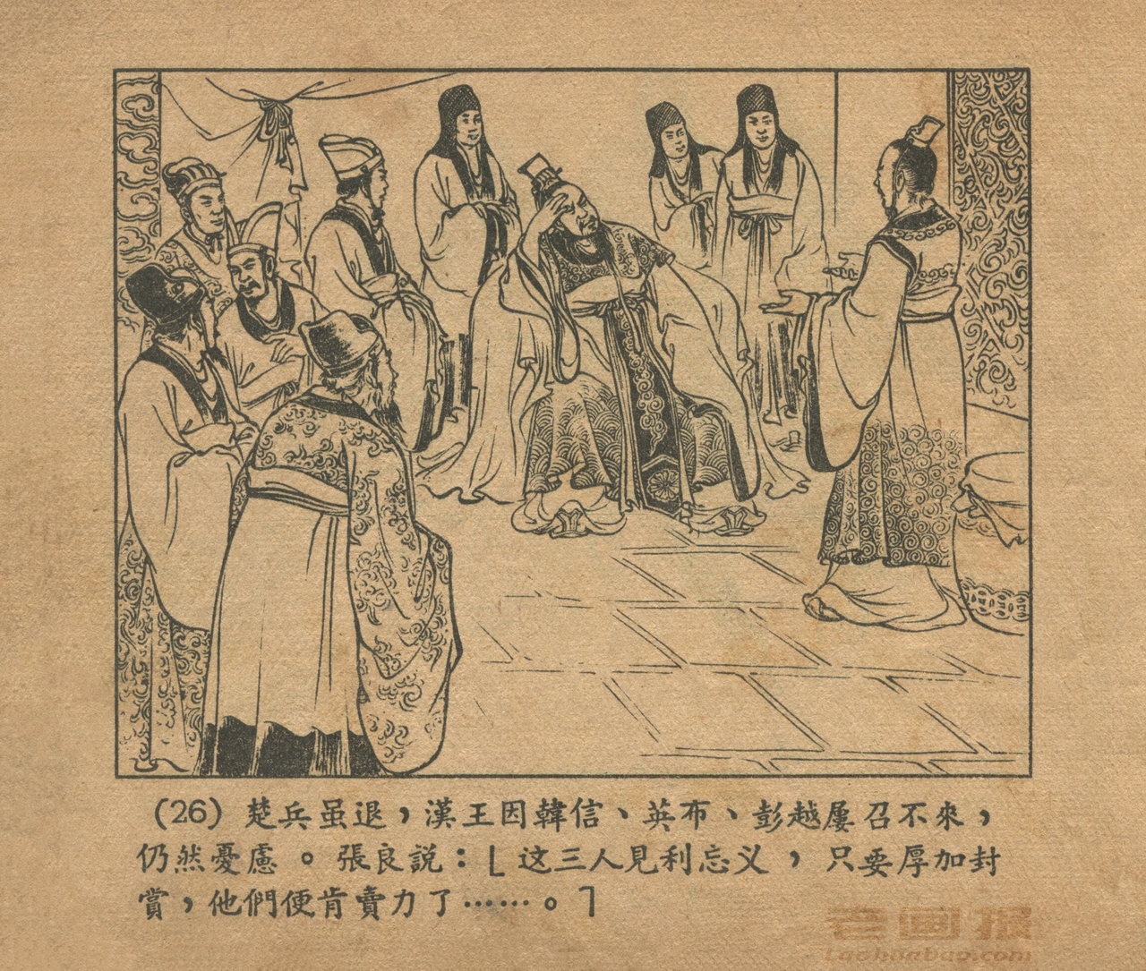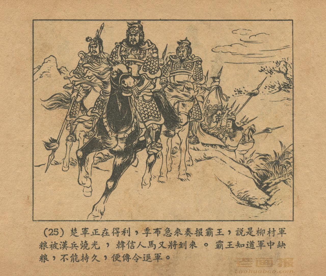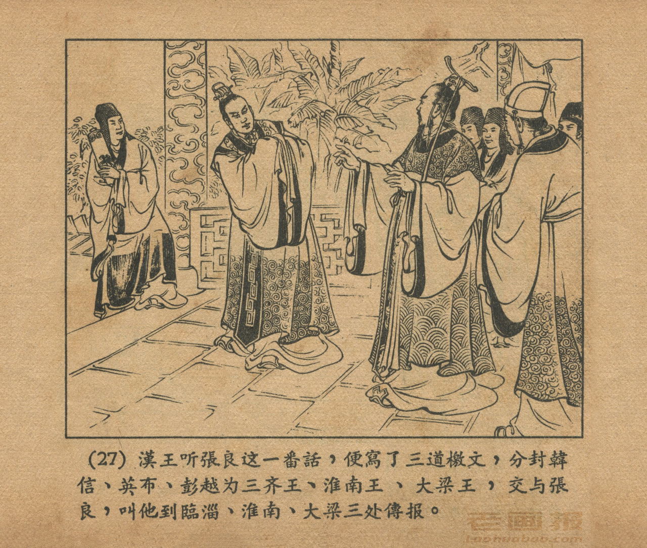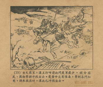 连环画《乌江自刎》 1958老版楚汉相争 第2页 编文:林林 绘画:李成勋 戴仁 上海人民美术出版社 1958 此连环画来源于连友“一步”藏书扫描,同意老画报网站免费发布。您可以自由分享、引用,但必须署名原作者,并不得用于商业目的。 1 2 3 4 5 6 7 8 9 目录 |<< < 上一页 下一页 > >>| 乌江自刎 共9页 < 上一页下一页 >